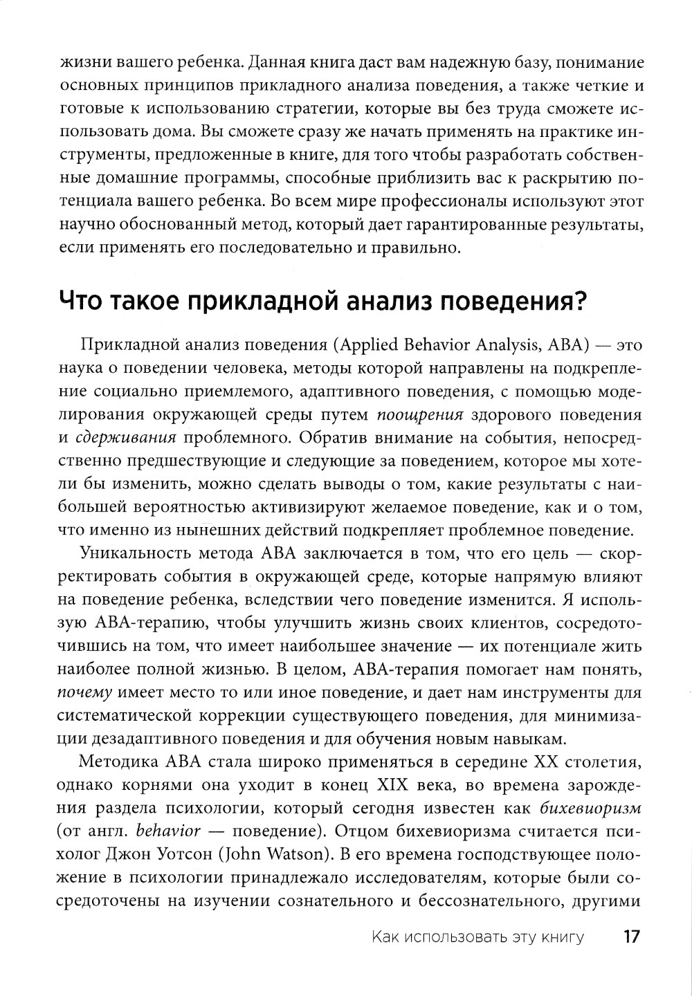 Воспитание детей с аутизмом - сложная и ответственная задача, которая ложится на плечи родителей. И каждый родитель, несомненно, хочет быть уверен в том, что, несмотря на круговорот повседневных дел и обязанностей, он делает все, что в его силах, чтобы обеспечить гармоничное развитие ребенка. В этой книге описаны терапевтические техники, эффективность которых научно доказана. Применяя данные техники ежедневно, можно помочь ребенку приобрести жизненно важные навыки и преуспеть. Автор книги, Виктория М. Бун, дает рабочие инструменты, которые помогут создать индивидуальный план по коррекции поведения ребенка с целью поощрить и закрепить положительное поведение и погасить нежелательное или проблемное. Используя стратегии, в основе которых лежат принципы прикладного анализа поведения, можно помочь ребенку с РАС достичь гораздо большего, чем могли бы предложить его родители. Эти стратегии и их применение подробно описаны в данной книге.