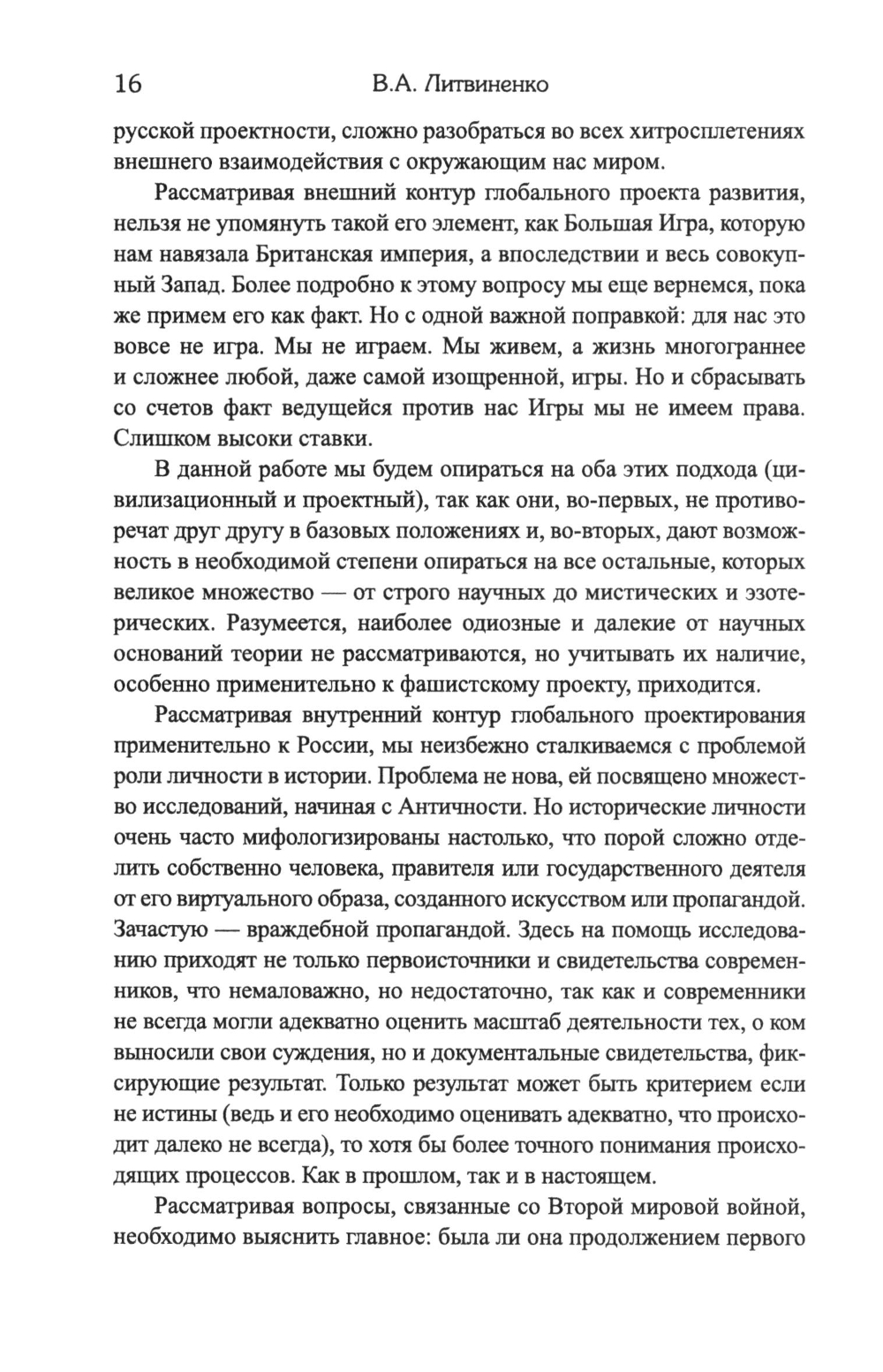 Книга посвящена изучению феномена Большой Игры как инструмента глобального противостояния Русского и Западного проектов развития и его влияния на европейскую и мировую политику Нового и Новейшего времени, включая анализ скрытых механизмов, «запустивших» две мировых войны XX века. При этом возникновение и развитие Русского проекта как особого цивилизационного пути представлено в контексте столкновения с Западным глобальным проектом на всем протяжении мировой истории. Рассчитана как на специалистов - историков, философов, политологов, так и на широкий круг читателей.| Издательство | Вече |