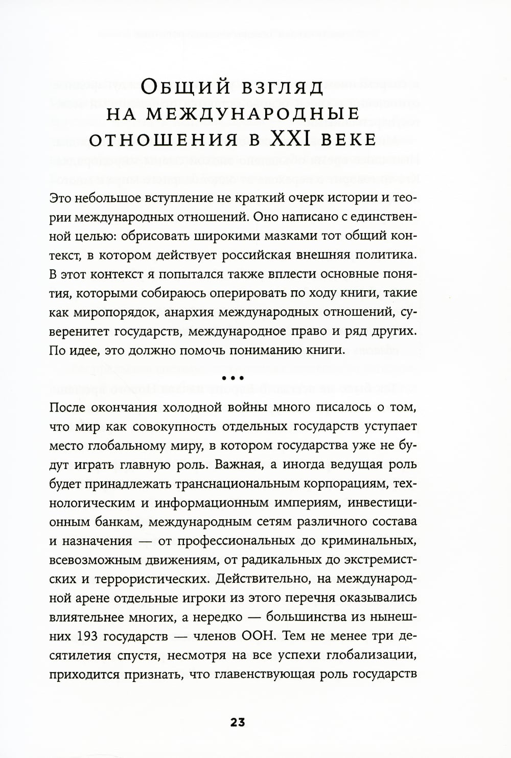 После 2014 года Россия стала заметно активнее во внешней политике, но четкой стратегии пока не видно. Во времена СССР мы с США соревновались за влияние во всем мире, а после 1991 года какое-то время пытались встроиться в Запад. Нужно ли нам опять становиться сверхдержавой? Как сбалансировать внутренние возможности и активность за пределами страны? Как выстраивать отношения с ближайшими соседями, включая Китай? Есть ли у нас точки соприкосновения с США и Западной Европой? Новая книга российского международника Дмитрия Тренина - приглашение к широкой дискуссии по важнейшим вопросам внешней политики России. Автор рассматривает основы, на которых строятся отношения России с другими государствами, - такие как суверенитет, национальный интерес, международное право, баланс сил. Дает обзор внешней политики Москвы под руководством Михаила Горбачева, Бориса Ельцина и Владимира Путина. Анализируя успехи, неудачи и ошибки недавнего прошлого, автор предлагает поразмышлять, как России выстраивать самостоятельную и равновесную внешнеполитическую стратегию в быстро меняющемся мире.| Издательство | Альпина Паблишер |