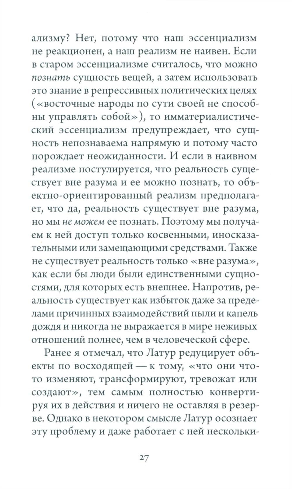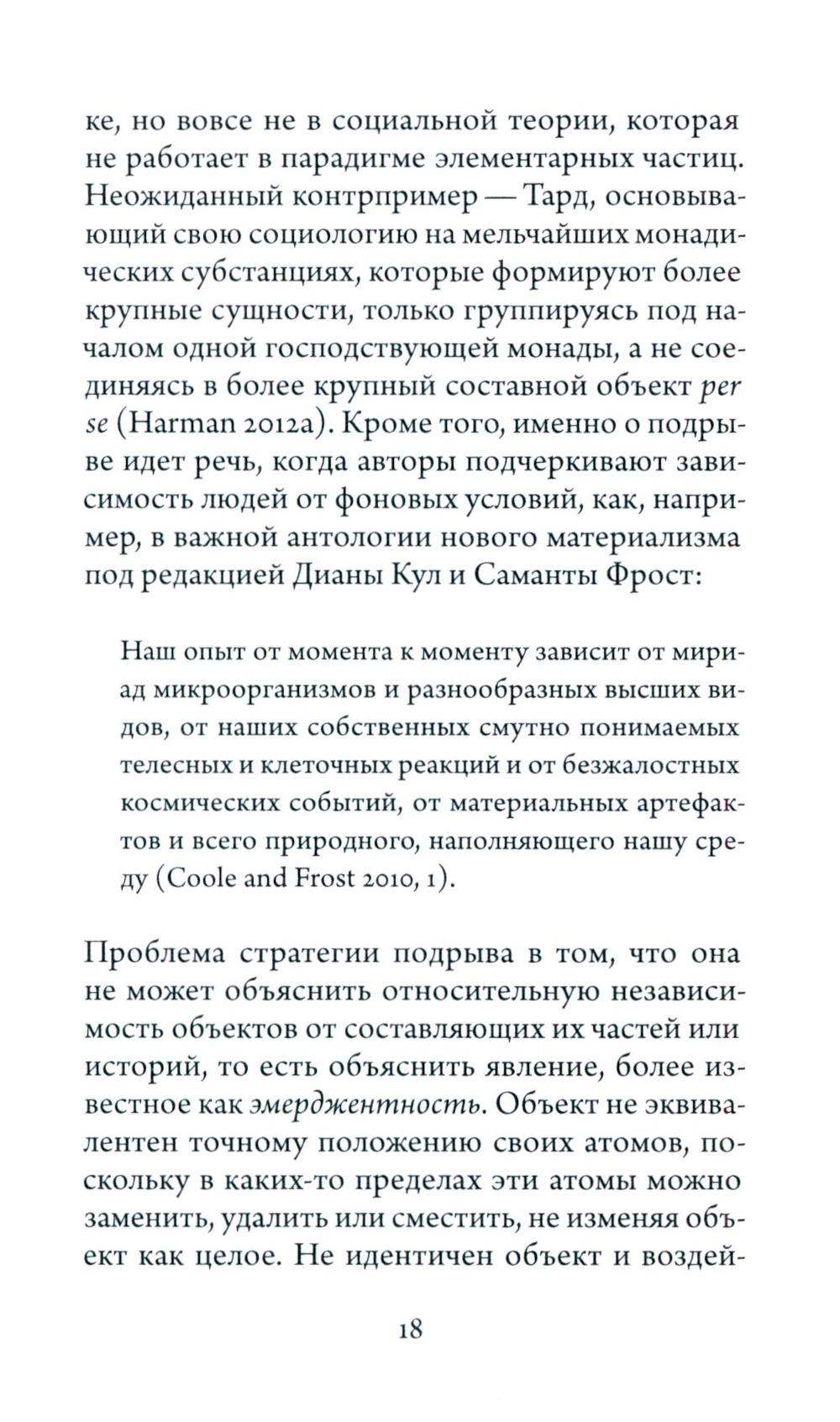 Из каких объектов состоит социальный мир и как их следует познавать? В этой книге Грэм Харман, создатель объектно-ориентированной философии, предлагает дальнейшее развитие своего подхода, чтобы прояснить природу и статус объектов социальной жизни. Его концептуальными противниками выступают акторно-сетевая теория Бруно Латура и новый материализм, в противовес которым он разрабатывает имматериалистическую социальную теорию. Центральной новацией имматериализма становится идея симбиоза, заимствованная у биолога Линн Маргулис. Аргументированное обсуждение стратегий познания объекта Харман дополняет обстоятельным анализом истории Голландской Ост-Индской компании как жизни объекта, проходящей через серию симбиозов. Книга адресована всем, кто интересуется актуальными дискуссиями в философии, социальной и культурной теории.| Издательство | Изд. Института Гайдара |