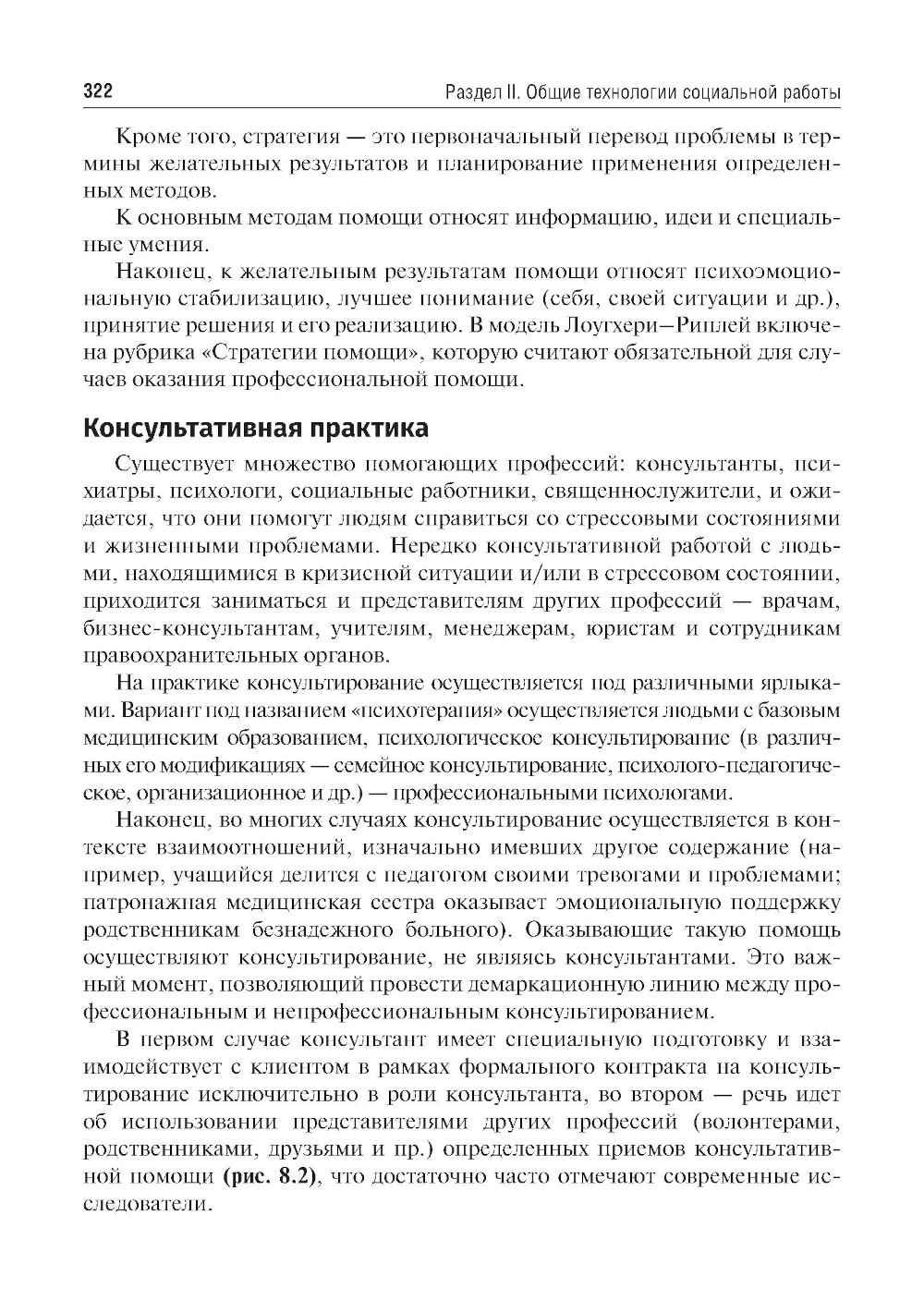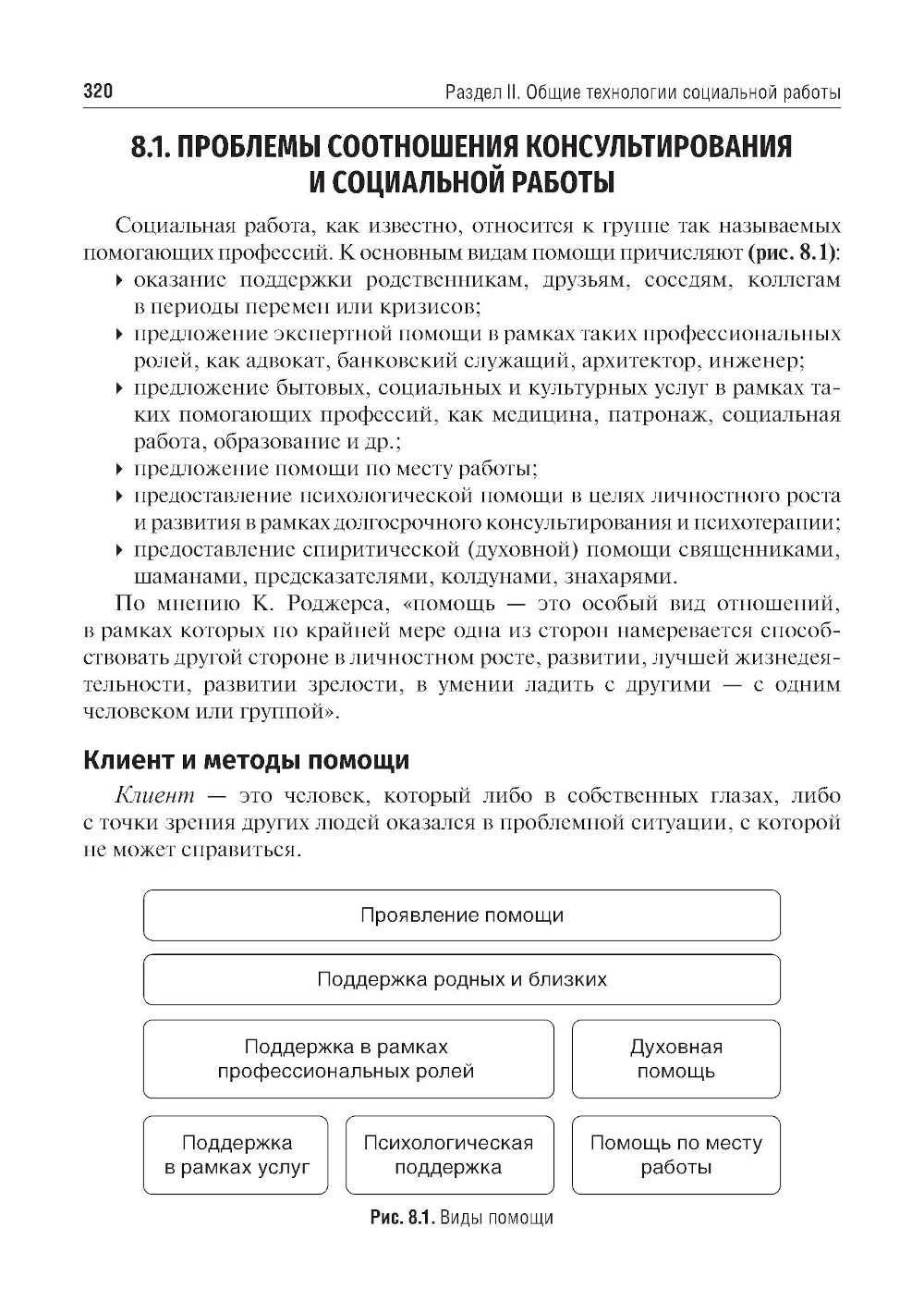 Учебник включает современные подходы к генезису помогающей практики в их эволюционном развитии. В нем отражены классические модели работы с различными группами населения, а также специальные технологии, получившие широкое распространение в Российской Федерации и за рубежом. Представлены материалы с учетом офлайн- и онлайн-практики социальной работы, которая складывается в современном познании в связи с особенностями взаимодействия с клиентами в постковидный период. Учебник адресован бакалаврам, магистрам, специалистам, слушателям, обучающимся на курсах повышения квалификации.