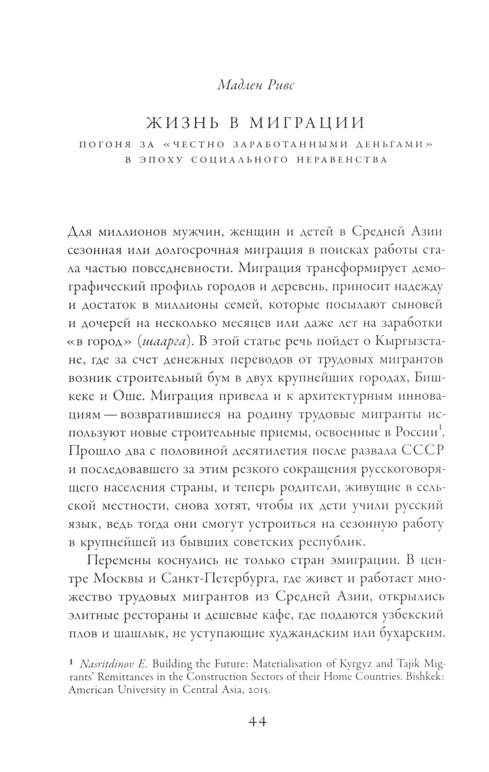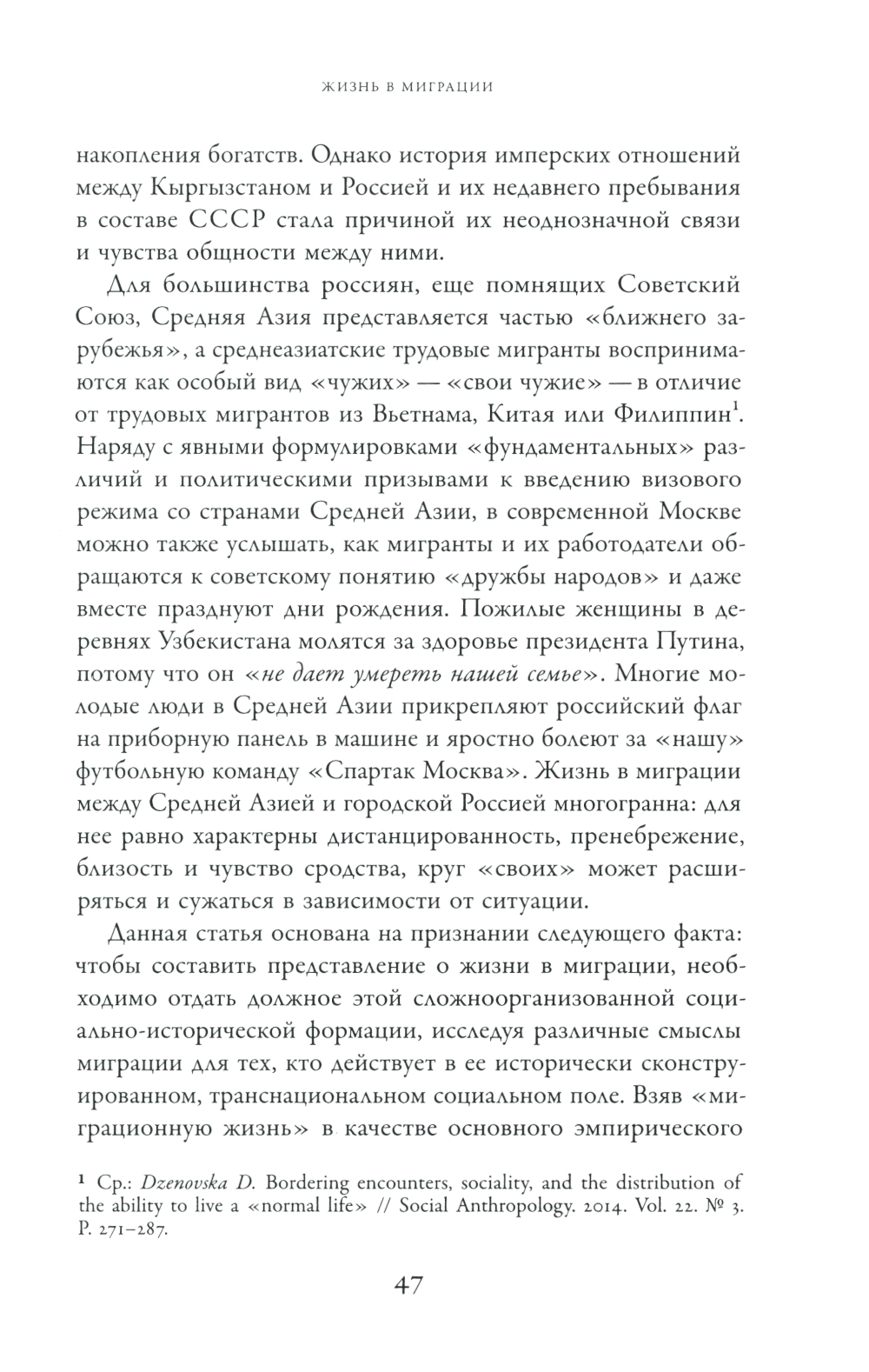 Миграция относится к числу социальных феноменов, лежащих в основе современного глобального мира. На первый взгляд, этот процесс направлен лишь в одну сторону: жители бедных регионов устремляются туда, где уровень жизни выше. Но при более пристальном рассмотрении выясняется, что переселенцы создают многоуровневые связи между сообществами, которые их «отправляют» и «принимают». Авторы этой книги обращаются к транснационализму и транслокальности - подходу, не находившему системного применения в российском академическом пространстве; они показывают, как мигранты выстраивают свои жизненные стратегии поверх государственных границ и барьеров - между «здесь» и «там». В статьях сборника исследуется жизнь трудовых мигрантов из Средней Азии и Северного Кавказа, а также их родственников, оставшихся дома: подвижная повседневность переселенцев и феномен семьи, разбросанной между разными местами проживания; перемещения людей и вещей; цифровые коммуникации и брачные стратегии; динамика ценностных установок и вкусов, характерная для тех, кто живет «между двумя мирами». Книга стала результатом международного исследовательского проекта «Транснациональные и транслокальные аспекты миграции в современной России», поддержанного Российским научным фондом (2014-2018).| Издательство | Новое литературное обозрение |