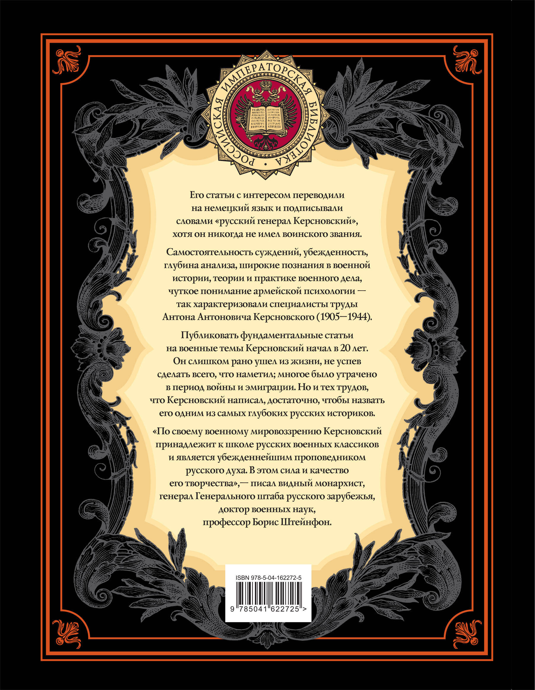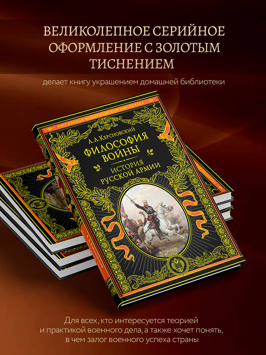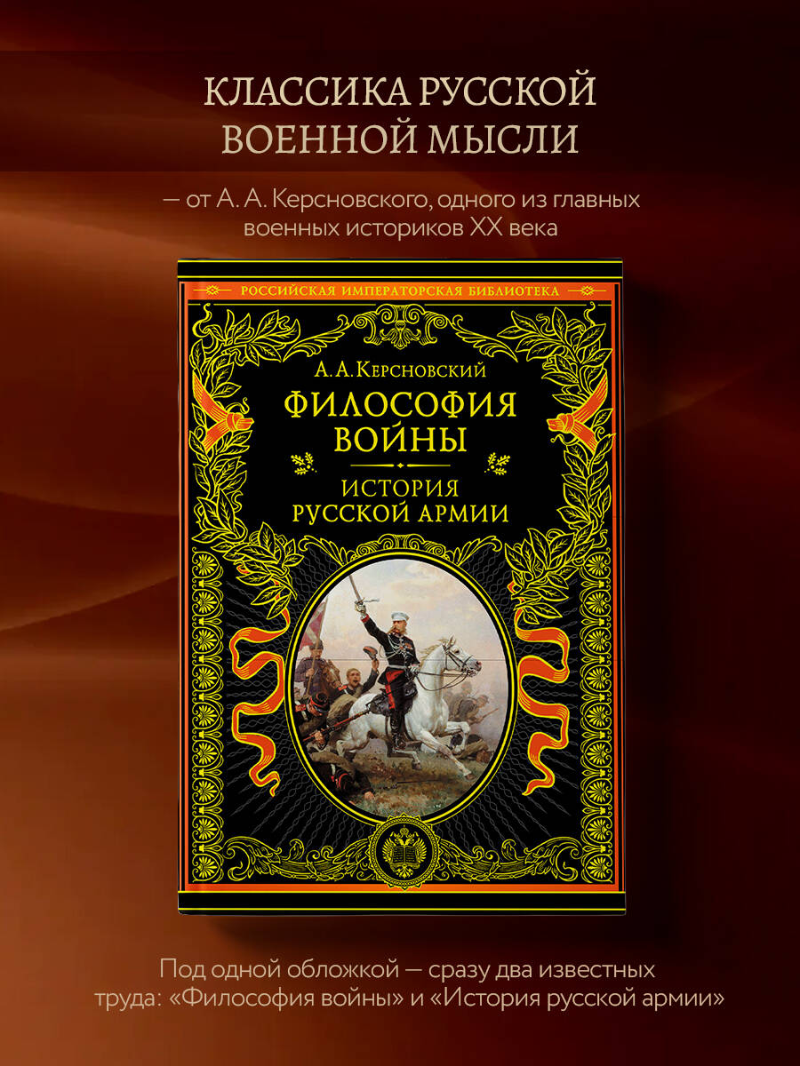 Антон Антонович Керсновский (1907-1944) по праву принадлежит к числу наиболее выдающихся военных историков XX века. Свой первый боевой опыт он получил в тринадцать лет на полях сражений Гражданской войны, но так и не стал ни полковником, ни генералом. Он всем сердцем болел за Россию, но скончался в Париже в разгар Второй мировой войны, которую предсказал задолго до ее фактического начала. Еще при жизни А. А. Керсновского его работы по военному делу высоко оценивались современниками, а по прошествии века укрепились в ряду классических трудов по русской военной истории. Предлагаемое издание содержит сразу два фундаментальных труда А. А. Керсновского - теоретическую «Философию войны» и «Историю русской армии», куда вошли очерки по истории русской императорской армии начиная с эпохи Петра I и до Первой мировой войны. Эта книга будет интересна всем, кого интересует история России, история развития российской государственности, этапы становления России, а также тем, кому небезразлична ее историческая судьба. Благодаря классическому серийному оформлению книга станет настоящим украшением книжной полки. Серия «Российская императорская библиотека» - это грандиозное собрание выдающихся образцов отечественной мысли и словесности. Издания, вошедшие в серию, представляют собой лучшее в великом духовном наследии нашей страны. Это труды, созданные знаменитыми историками, учеными, великими государственными деятелями и посвященные тысячелетней истории России, ее культуре и искусству, военной славе, многовековым народным обычаям и деяниям выдающихся представителей нашего Отечества. Прекрасная возможность составить свою домашнюю библиотеку из великих трудов о великой стране. Каждая книга серии богато проиллюстрирована многочисленными цветными и черно-белыми иллюстрациями, которые дают возможность в полном объеме увидеть то, что составляет сокровищницу культурного наследия нашей страны! Каждая книга серии станет великолепным подарком: для тех, кто собирает домашнюю библиотеку классических трудов; для тех, кто интересуется историей России, выдающимися личностями; для школьников и студентов.| Издательство | ООО "Издательство "Эксмо" |