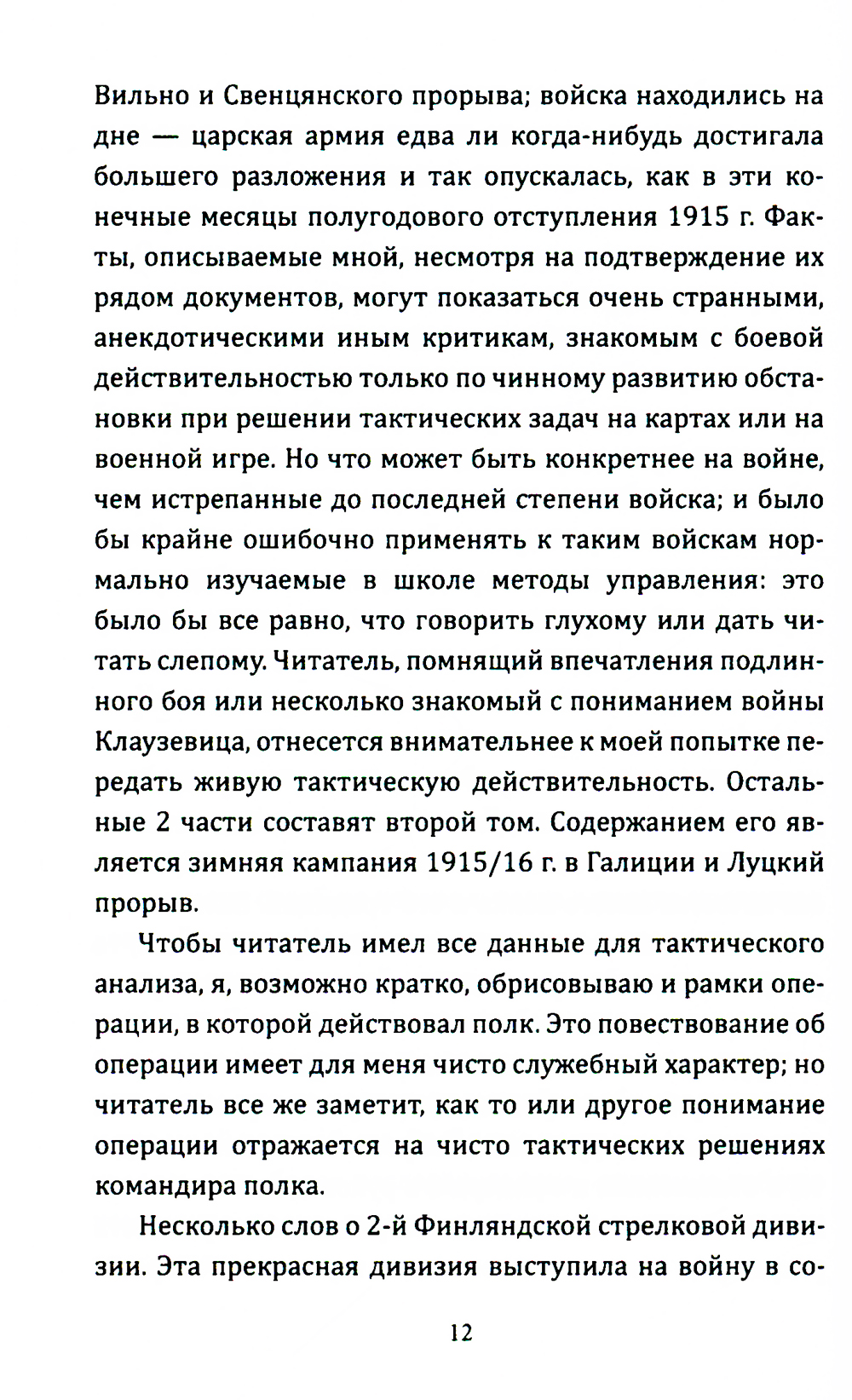 Листая страницы этой книги, вы понимаете, что проблемы о которых пишет Александр Андреевич Свечин очень напоминают нелакированную сводку современных новостей. Связь, боеприпасы, стыки-соседи, ошибки-просчеты командования и все это фоном для скупых записок-докладных командиров батальонов "занят позицию, фланг открыт… много раненых и т.д." Командиру предстоит принять решение, без решения нет командира и нет победы.