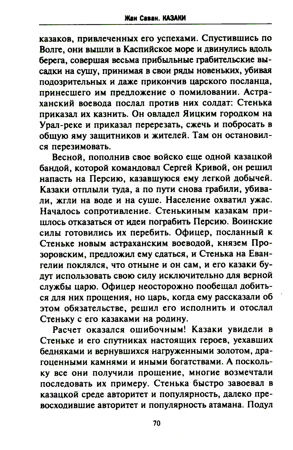 Книга французского историка Жана Савана посвящена истории военно-служилого сословия, стоявшего на страже границ Российской империи и у истоков ее государственности. Автор прослеживает многовековой путь казачества от вольных общин до службы в гвардейских полках Русской императорской армии, описывает историю возникновения одиннадцати казачьих войск, принимавших участие в военных кампаниях, покорении Сибири и освоении земель Дальнего Востока. Профессор Саван, опираясь на этнографические исследования, рассказывает об уникальных внешних чертах, характерных для казаков и казачек Области войска Донского, Кавказа, Урала, Забайкалья и других мест расселения, о традициях и обычаях вольных людей, сохранявших не только память о военной славе, но и самобытное творческое наследие.| Издательство | Центрполиграф |