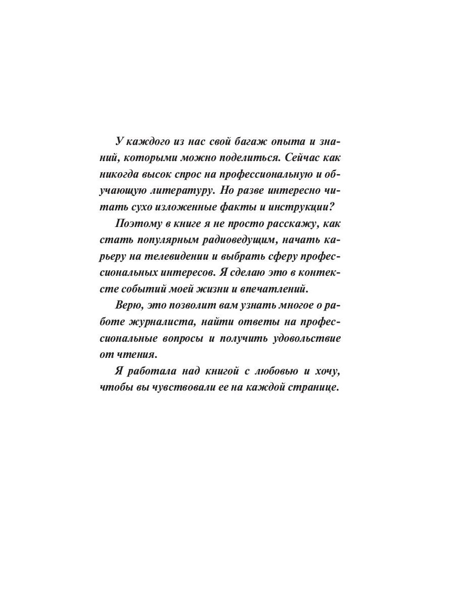 Как стать популярным радиоведущим, имея в арсенале только огромное желание? Можно ли поменять сферу деятельности и не пожалеть об этом? Каков он - путь от ассистента до главного редактора? И главное - как наполнить любовью все сферы жизни? На эти и другие актуальные вопросы отвечает Любовь Курьянова - популярный журналист, главный редактор телерадиокомпании «Русский мир», кандидат педагогических наук, педагог по ораторскому мастерству и мотивирующий лектор. Сквозь призму профессионального опыта и личных впечатлений она рассказывает о пути в большую журналистику, делится ценными советами, личными историями и мотивирует читателя менять мир вокруг, а главное - внутри себя, пропитывая его любовью. В этой книге собраны профессиональные кейсы для начинающих журналистов, советы для профессионалов, которые хотят развиваться и совершенствоваться, и увлекательные истории - карьерные и житейские, которые придутся по душе любому читателю. Здесь вы найдете ответы на вопросы, как верить в себя и свою мечту, не бояться брать на себя ответственность, соблюдать баланс работы и личной жизни, осознанно относиться к своему выбору, и погрузитесь в мир журналистики с любовью.| Издательство | Рипол Классик |