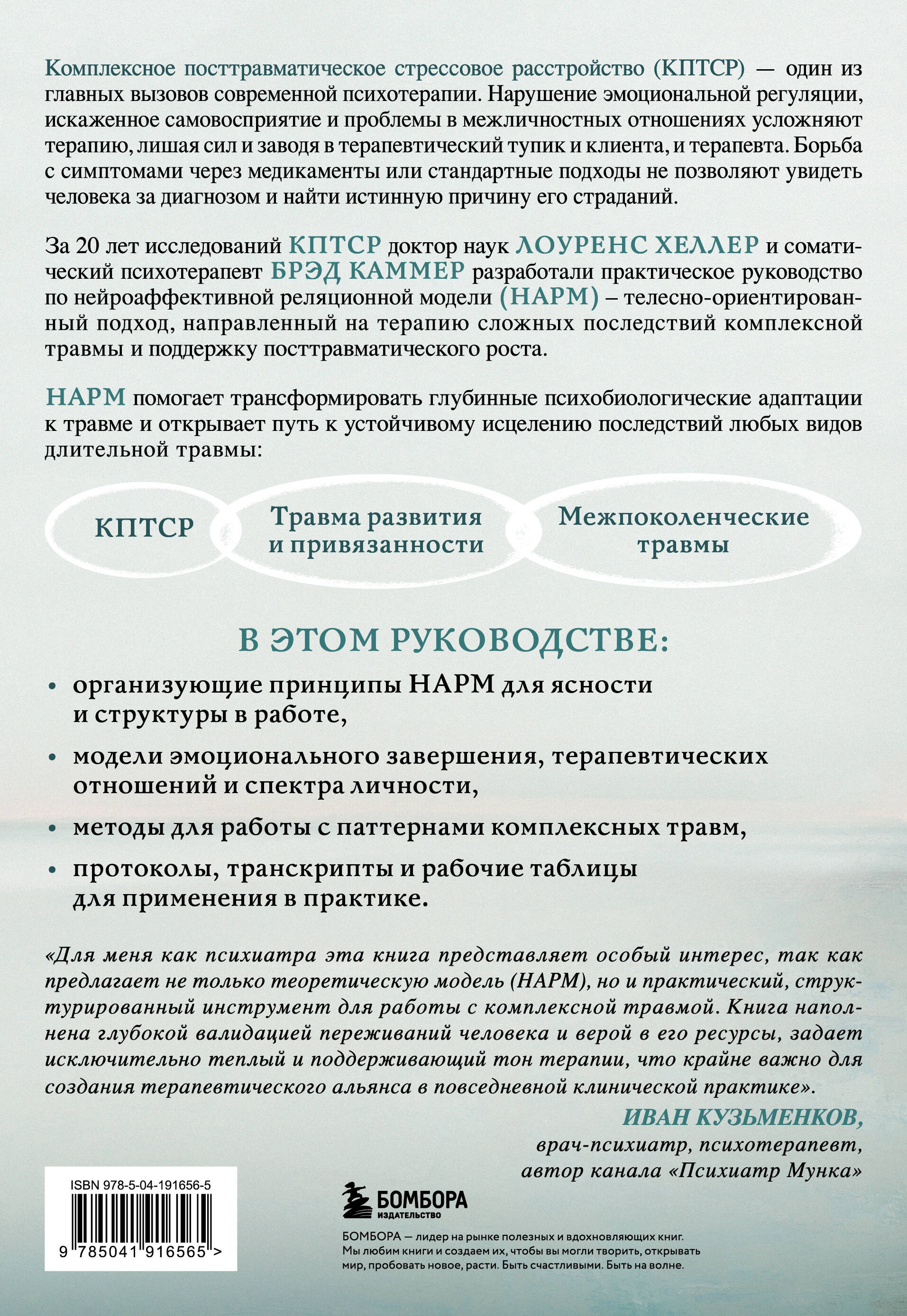 Комплексное посттравматическое стрессовое расстройство (КПТСР) - один из главных вызовов современной психотерапии. Эксперты в области КПТСР доктор наук Лоуренс Хеллер и соматический психотерапевт Брэд Каммер разработали практическое руководство по нейроаффективной реляционной модели (НАРМ) - телесно-ориентированного подхода, направленного на терапию сложных последствий комплексной травмы и поддержку посттравматического роста. Вместо борьбы с симптомами НАРМ помогает трансформировать глубинные психобиологические адаптации к травме и открывает путь к устойчивому исцелению любых видов длительной травмы: комплексного посттравматического стрессового расстройства (КПТСР), травмы развития и привязанности и межпоколенческих травм. В этом руководстве: - организующие принципы НАРМ для ясности и структуры в работе; - модели эмоционального завершения, терапевтических отношений и спектра личности; - методы для работы с паттернами комплексных травм; протоколы, - транскрипты и рабочие таблицы для применения в практике.| Издательство | ООО "Издательство "Эксмо" |