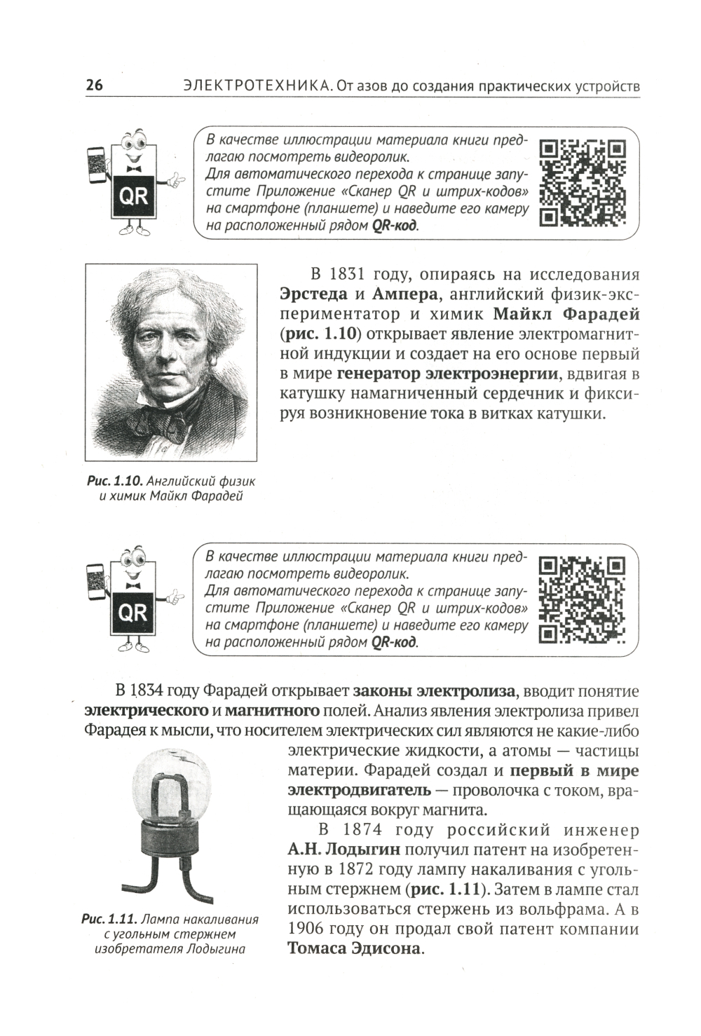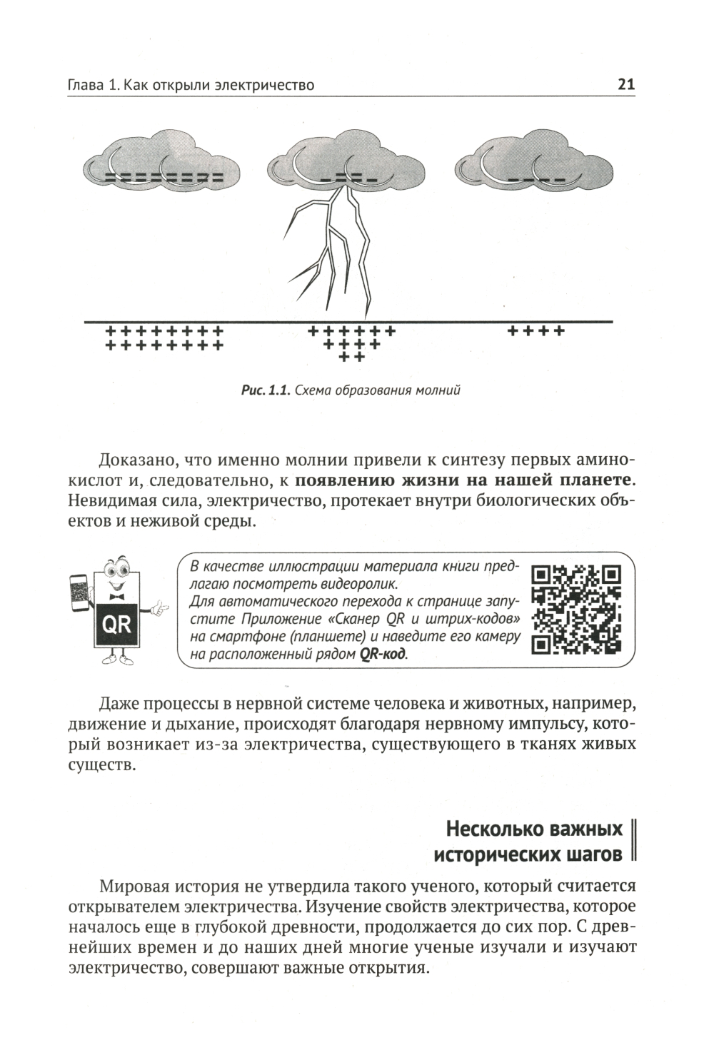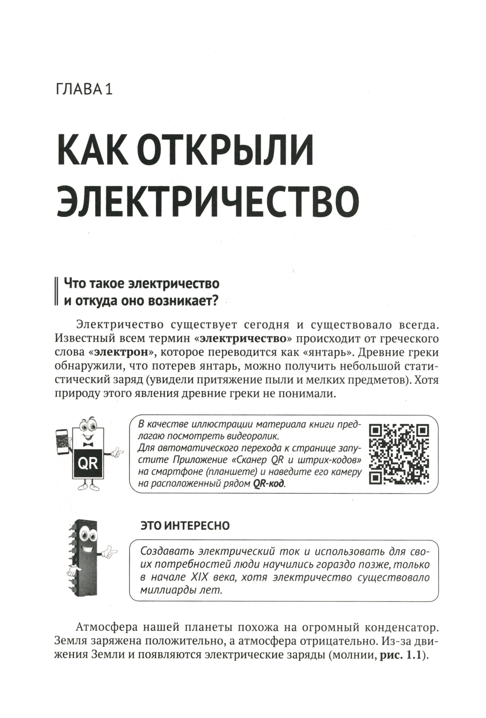 Книга посвящена электротехнике, определяющей сегодня нашу повседневную жизнь. Это интерактивный самоучитель для начинающих свой путь в электротехнику: от изучения основ в ходе экспериментов до практических работ по созданию законченных устройств и систем. В книге нет «теории ради теории». Изложено самое необходимое. Это позволит чувствовать себя уверенно при практической работе с электротехникой. Есть в книге и необходимые базовые формулы, без которых не понять принципа работы электротехнических устройств. В практической части книги рассмотрены: монтаж электросчетчиков, создание квартирных электрощитков, практические схемы управления современным освещением, ТЭНами, а также коммутационными устройствами, обеспечивающими безопасную эксплуатацию электродвигателей и многое другое. Большой практический раздел посвящен интерактивным калькуляторам, позволяющим быстро произвести необходимые расчеты электропроводки, элементов защиты сети, освещения дома и квартиры, ТЭНов, бытовых электродвигателей. В необходимых местах по тексту книги стоят QR-коды, предназначенные для мгновенного перехода к необходимым ресурсам (онлайн видео, интерактивному калькулятору, справочной информации). Приложение «Сканер QR и штрих-кодов», запущенное на смартфоне (планшете), позволяет быстро перейти по необходимой ссылке при наведен ии гаджета на QR-код по ходу чтения книги. Книга предназначена для широкого круга читателей: школьников, студентов радиотехнических специальностей, радиолюбителей.| Издательство | Наука и техника |