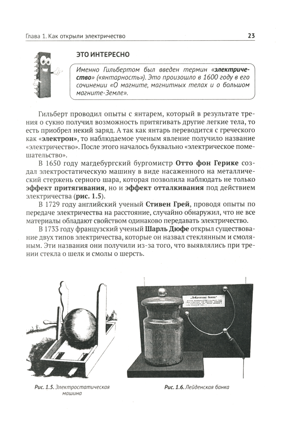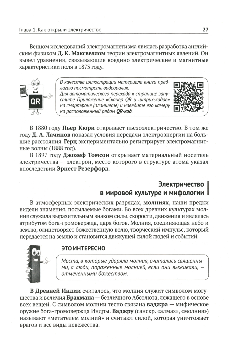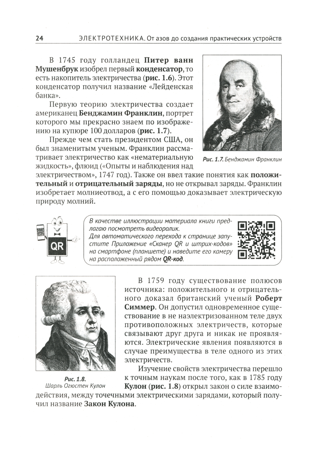 Книга посвящена электротехнике, определяющей сегодня нашу повседневную жизнь. Это интерактивный самоучитель для начинающих свой путь в электротехнику: от изучения основ в ходе экспериментов до практических работ по созданию законченных устройств и систем. В книге нет «теории ради теории». Изложено самое необходимое. Это позволит чувствовать себя уверенно при практической работе с электротехникой. Есть в книге и необходимые базовые формулы, без которых не понять принципа работы электротехнических устройств. В практической части книги рассмотрены: монтаж электросчетчиков, создание квартирных электрощитков, практические схемы управления современным освещением, ТЭНами, а также коммутационными устройствами, обеспечивающими безопасную эксплуатацию электродвигателей и многое другое. Большой практический раздел посвящен интерактивным калькуляторам, позволяющим быстро произвести необходимые расчеты электропроводки, элементов защиты сети, освещения дома и квартиры, ТЭНов, бытовых электродвигателей. В необходимых местах по тексту книги стоят QR-коды, предназначенные для мгновенного перехода к необходимым ресурсам (онлайн видео, интерактивному калькулятору, справочной информации). Приложение «Сканер QR и штрих-кодов», запущенное на смартфоне (планшете), позволяет быстро перейти по необходимой ссылке при наведен ии гаджета на QR-код по ходу чтения книги. Книга предназначена для широкого круга читателей: школьников, студентов радиотехнических специальностей, радиолюбителей.| Издательство | Наука и техника |