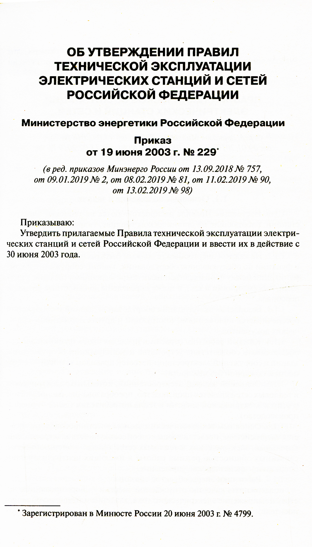 Аннотация: Правила технической эксплуатации электрических станций и сетей РФ