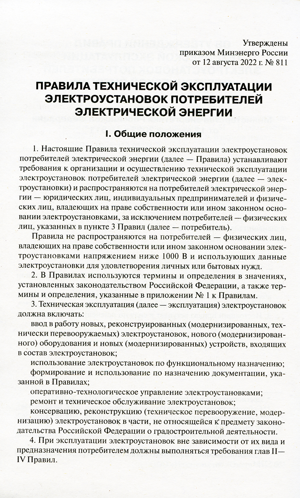 Правила технической эксплуатации электроустановок потребителей электрической энергии