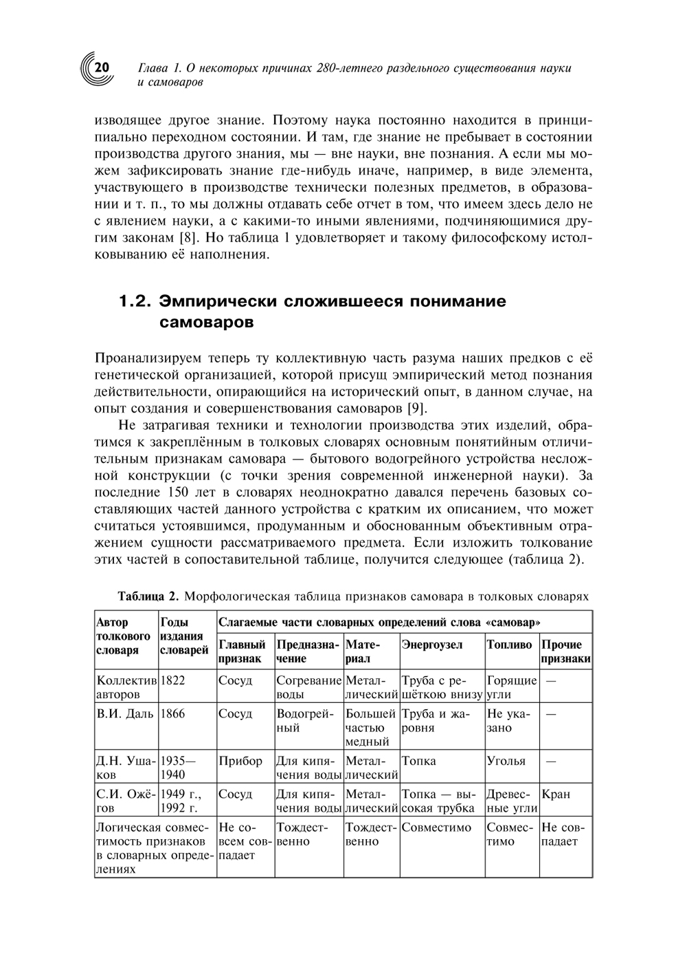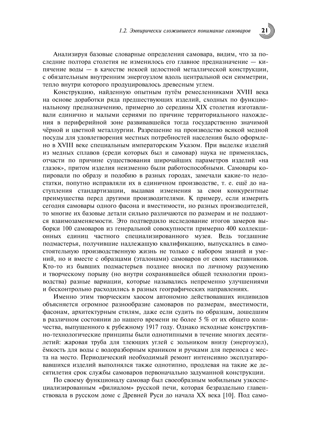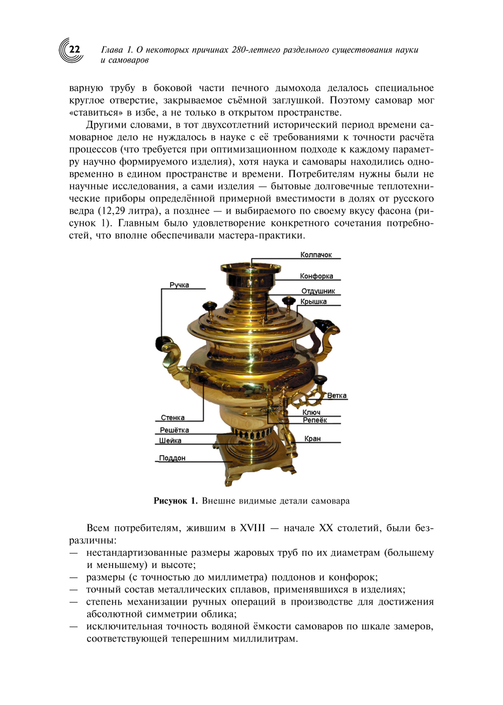В монографии впервые исследуется междисциплинарность технических решений в самоварах, которые были эмпирически найдены мастерами за минувшие 280 лет. Ни одна из наук не делала это изделие предметом исследования. Всё, что накопилось в информационном пространстве нашей страны за последние полвека, представляет собой информационный массив слабо структурированного характера, ориентированный преимущественно на описательное отражение разнородных внешних сведений и относительно поверхностное изучение артефактов минувших столетий с технологиями их производства, которые явно устарели к сегодняшнему дню. В книге сделана попытка выявления того неосознаваемого до сих пор положения, что изобретённый в XVIII столетии русский древесноугольный самовар, несмотря на несложную его конструкцию, является техническим устройством, затрагивающим все шесть информационных каналов человека, от непосредственного тактильного контакта до дистанционного воздействия на структуры головного мозга. Оттого он столь устойчив во времени. Отмечены и проанализированы причины не увенчавшихся успехом неоднократных попыток его модернизации с переходом от древесного угля к другим видам топлива. Сделана попытка показать потенциальную возможность его совершенствования без потери потребительских свойств, что вполне возможно при надлежащем серьёзном инженерном подходе в перспективе. Впервые вводится классификационная таблица самоваров по фасонам и архитектурным стилям, существенно расширяющая представление о возможности создания многочисленных новых форм. Также впервые проведены натурные измерения 100 классических самоваров, выпущенных до 1917 года, на основе статистической обработки которых сделаны выводы. Книга обладает бесспорной новизной в части анализа и комплексного освещения самых разных сторон, относящихся к технико-исторической логике возникновения, постепенного распространения и закрепления в российской культуре самовара как национального достояния. Данное издание будет полезно широкому кругу читателей,сохранивших интерес к яркому образчику самобытной русской культуры, а также сотрудникам музеев - многочисленных краеведческих и немногих специализированных - самоварных. Весомым подспорьем она будет и тем, кто желает сохранить высокие потребительские свойства нагреваемой воды, глубже погрузиться в эту сферу и развивать самоварное производство в текущем веке на основе радикального изменения конструкции с применением не только современных машиностроительных технологий, но и цифровых.| Издательство | Техносфера |