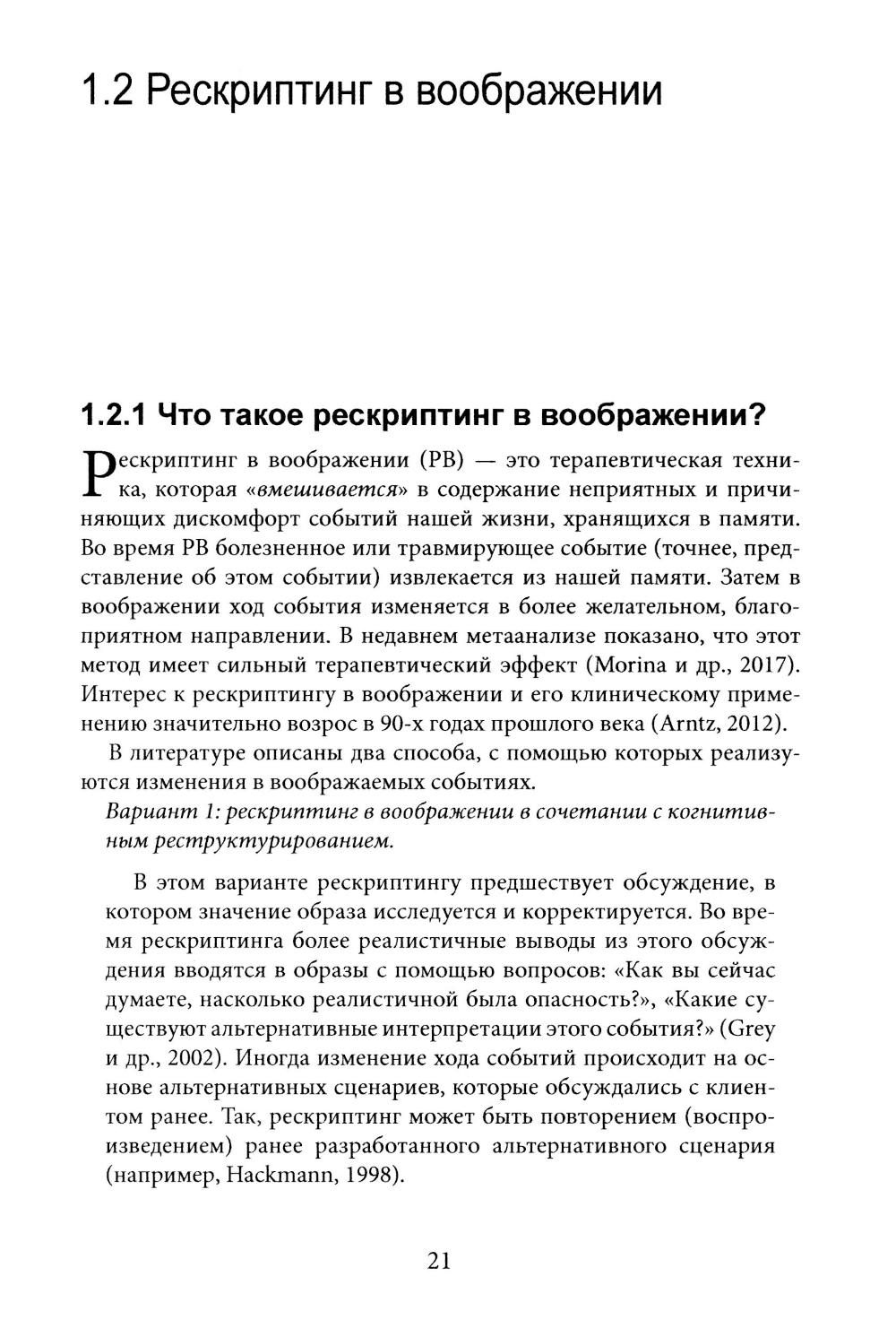 Данная книга посвящена важной технике в современной психотерапии - рескриптингу. Эта техника широко используется в таких методах как когнитивно-поведенческая психотерапия и схемотерапия. Она позволяет прорабатывать травматические воспоминания, ставшие причиной возникновения дисфункциональных убеждений или схем. Книга будет интересна широкому кругу специалистов в области психического здоровья.Те из вас, кто еще не знаком с методом рескриптинга, могут спросить, стоит ли вообще использовать рескриптинг в когнитивной терапии пациентов с депрессией, если когнитивно-поведенческий подход традиционно использует вербальную проработку негативных мыслей и/или систему поведенческой активации.Однако, благодаря проведенной недавно экспериментальной работе, мы знаем, что использование воображения оказывает гораздо большее влияние на эмоции, чем вербальные техники анализа образа мышления. Это делает метод работы с воображением более эффективным при выявлении и трансформации эмоций по сравнению с вербальным подходом, таким, как, например, запись мыслей. Из данной статьи вы узнаете, почему навязчивые воспоминания могут стать потенциальным объектом работы в терапии депрессии и почему рескриптинг (подход, который изначально разрабатывался для взаимодействия с травмирующими воспоминаниями при лечении других расстройств) может быть очень полезен для лечения депрессии.| Издательство | Институт общегуманитарных исследований (ИОИ) |