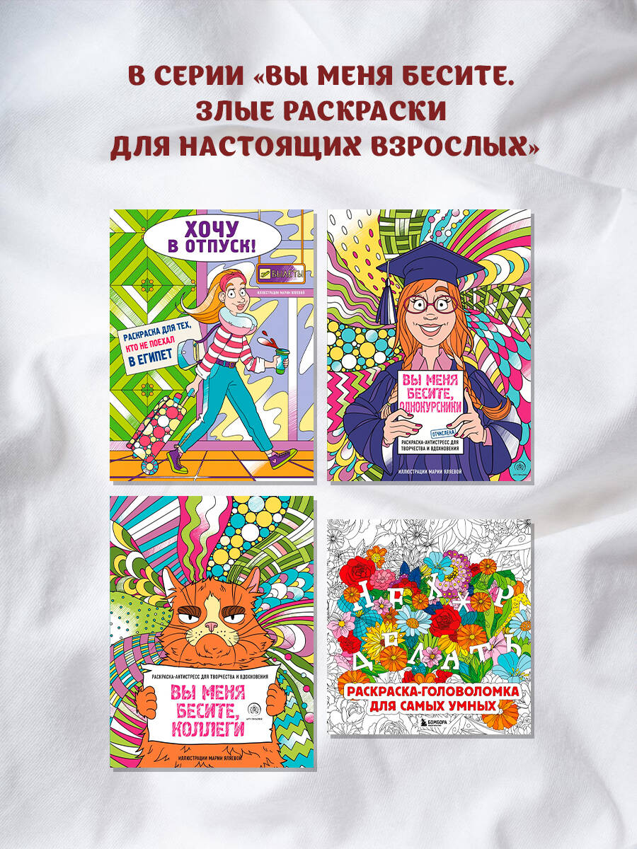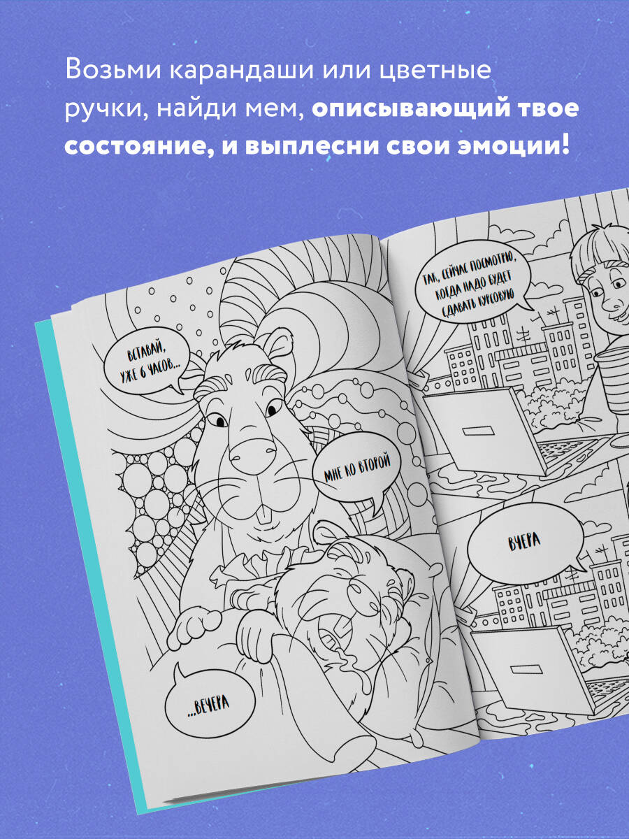 Перед тобой необычная раскраска-антистресс! Если тебя достали однокурсники и хочется расслабиться после учебного дня, то эта раскраска прекрасно подойдет! Возьми свои любимые карандаши или цветные ручки, найди мем, наиболее полно описывающий твое состояние, и выплесни свои эмоции! Отвлекись от внешнего мира, раскрашивая капибар и обезьянок в жизненных ситуациях из известных мемов! Серия «Арт-терапия» - это множество причудливых узоров и фантастических рисунков, которые подарят вам спокойствие и умиротворение и помогут избавиться от стресса. Медитативные раскраски для взрослых, мировые бестселлеры, трендовые темы и море позитива.| Издательство | ООО "Издательство "Эксмо" |