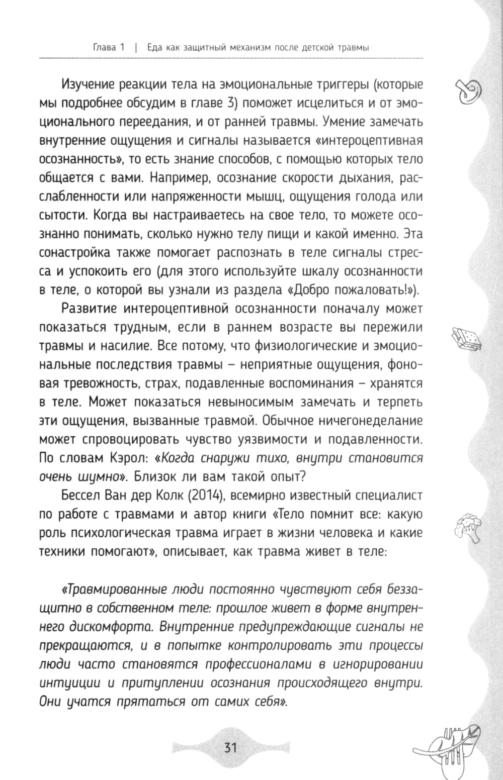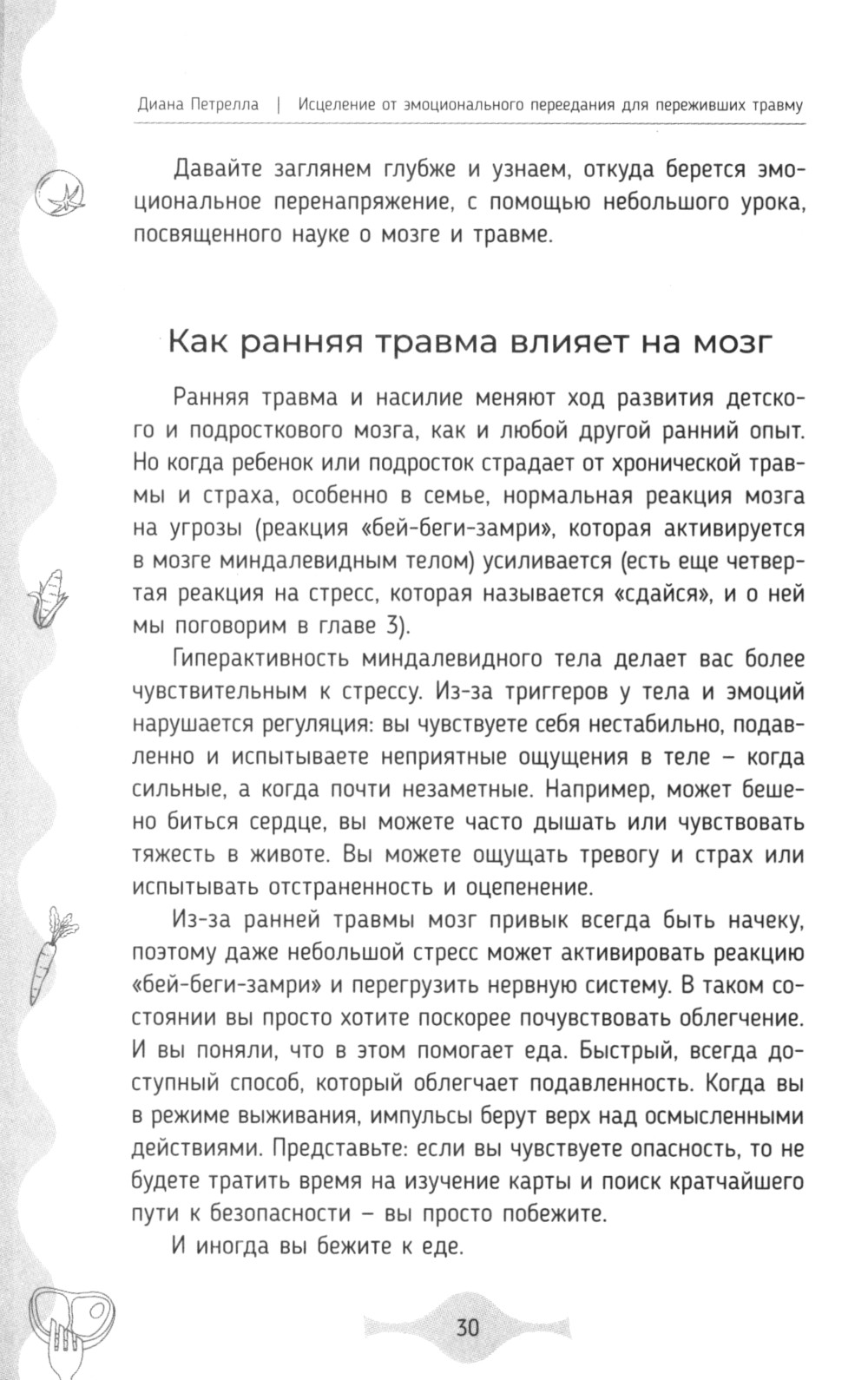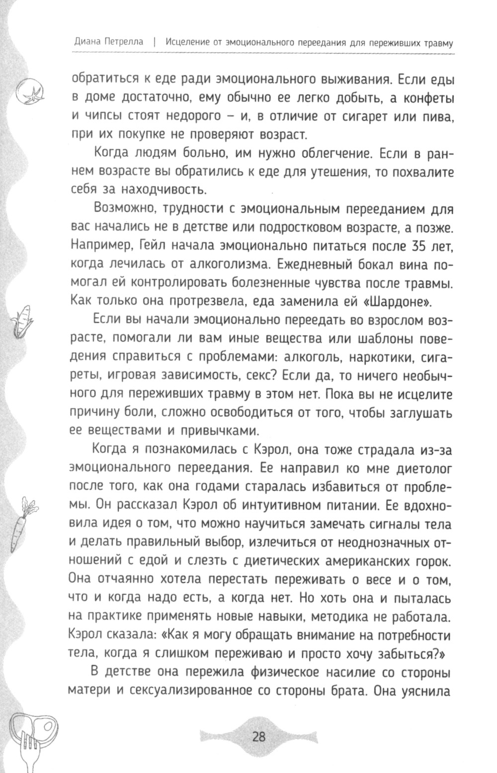 Эта книга о питании позволит обнаружить и исцелить эмоциональную травму, которая обычно и является причиной переедания. Автор окажет вам поддержку на этом пути и поможет осознать, что эмоциональное переедание - не ваша вина, а лишь стратегия заботы о себе, благодаря которой вы выжили. Не стоит корить себя за отсутствие силы воли.