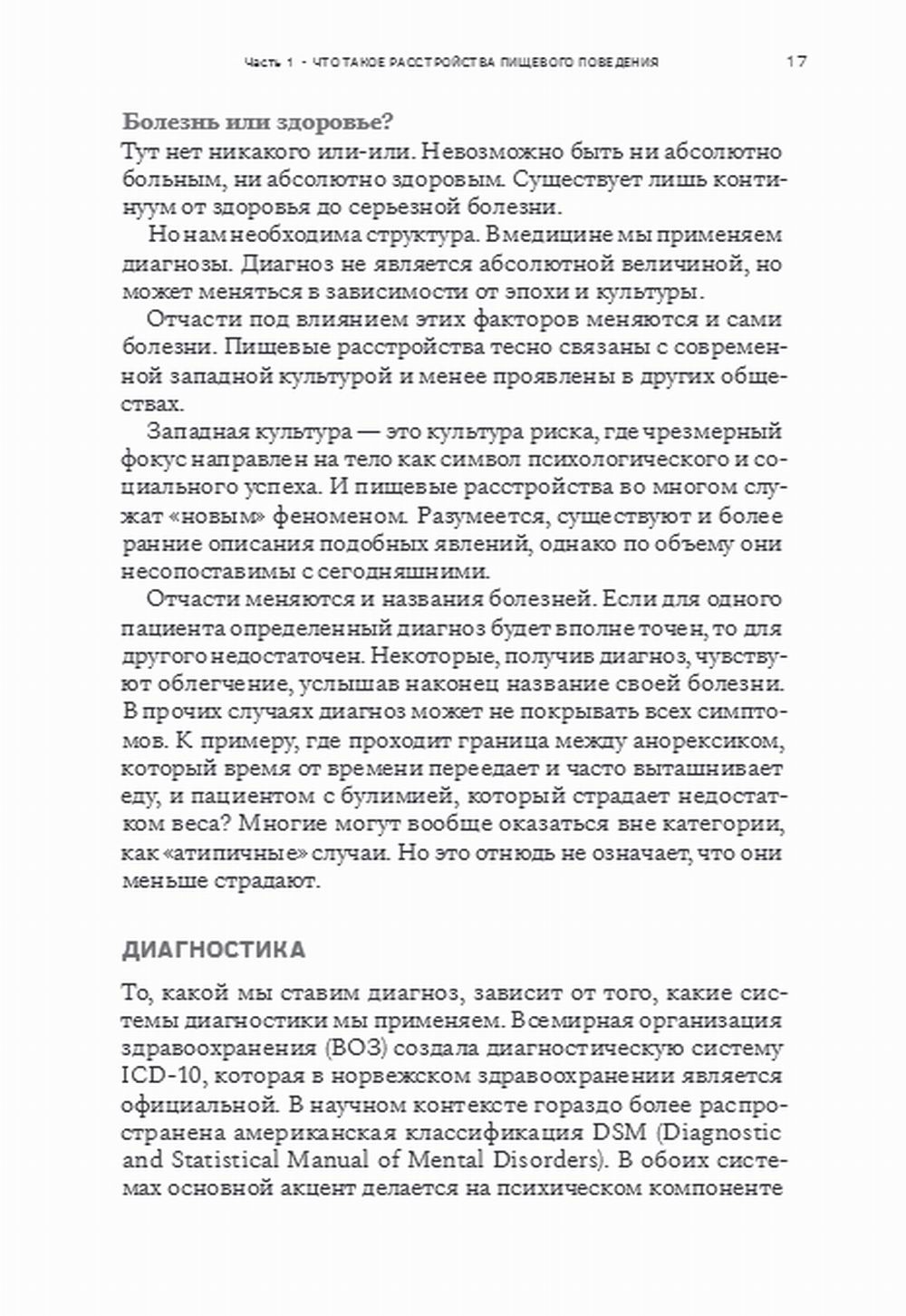 Этот справочник представляет собой обширное введение в тему расстройств пищевого поведения (РПП), изложенное в доступной форме. Здесь, как в практическом путеводителе, даются указания, как себя вести и как действовать. Автор не только описывает специфические свойства пищевых расстройств, но и показывает, что за этими чертами скрываются такие общечеловеческие темы, как тоска, гнев и стыд. Книга предназначается как людям, страдающим РПП, так и их родственникам, партнерам и друзьям, а также всем тем, кто занимается уходом за больными и их лечением.| Издательство | Городец |