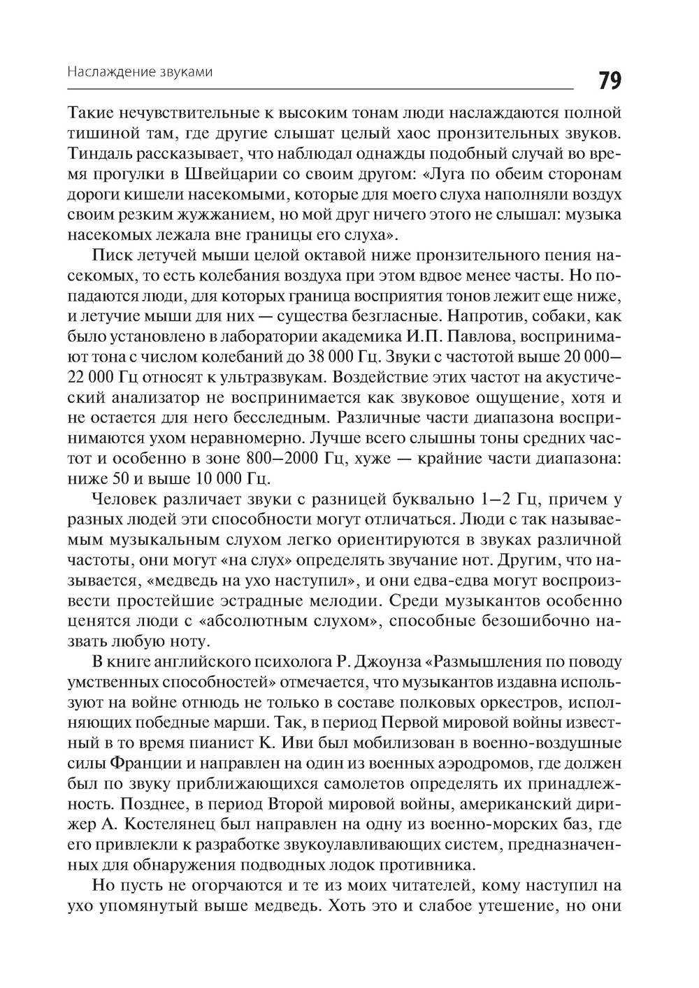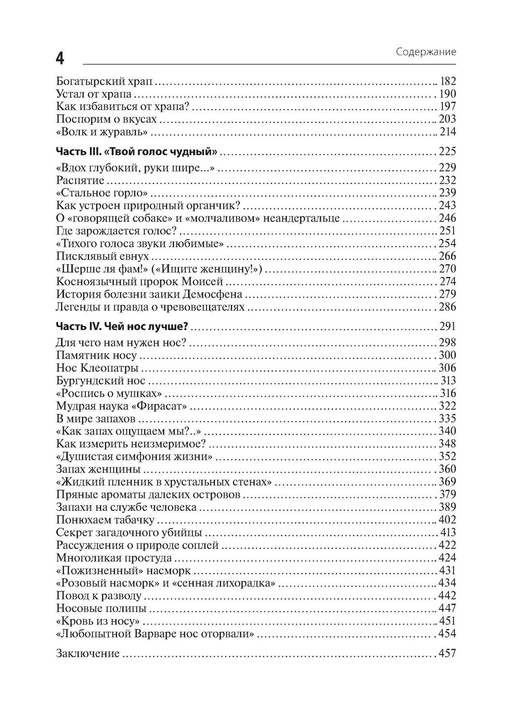 В книге в занимательной форме рассказано об органах чувств человека. Рассмотрены анатомия и физиология уха, горла и носа, а также связанные с ними заболевания. Приведено много интересных фактов «из жизни» этих органов. Сделаны исторические заметки и даны отсылки к литературным, этнографическим, музыкальным и религиозным источникам, из которых читатель почерпнет немало полезной информации о восприятии ароматов, многообразии звуков, природе вкуса, происхождении речи и о многом-многом другом. Книга предназначена широкому кругу читателей.