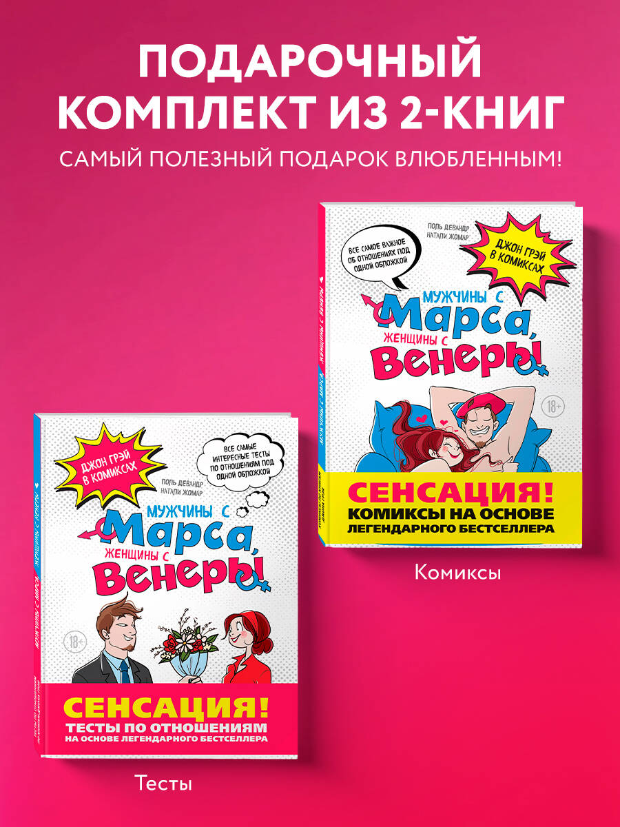 Главная книга по отношениям впервые в комиксах! Перед вами остроумные и откровенные комиксы и тесты, созданные на основе самой популярной книги в мире по отношениям "Мужчины с Марса, женщины с Венеры" Джона Грэя, которая была переведена на 50 языков и издана тиражом более 60 000 000 экземпляров. Комиксы помогут мужчинам и женщинам научиться лучше понимать друг друга, уважать чувства и желания партнера, сохранить любовь и гармонию в отношениях.| Издательство | ООО "Издательство "Эксмо" |