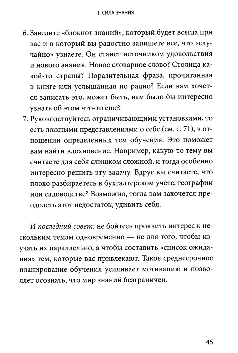 Вам бы хотелось попробовать себя в какой-нибудь новой профессии, научиться чему-то, выучить иностранный язык, работать продуктивнее? С этой книгой вы заново научитесь учиться и использовать свой безграничный потенциал, а специальные методики помогут вам улучшить концентрацию, приумножить знания и повысить интеллектуальные способности. Вы сможете наконец отказаться от ограничивающих убеждений, научитесь оптимально управлять временем и сумеете воплотить в жизнь все свои проекты!| Издательство | Попурри |