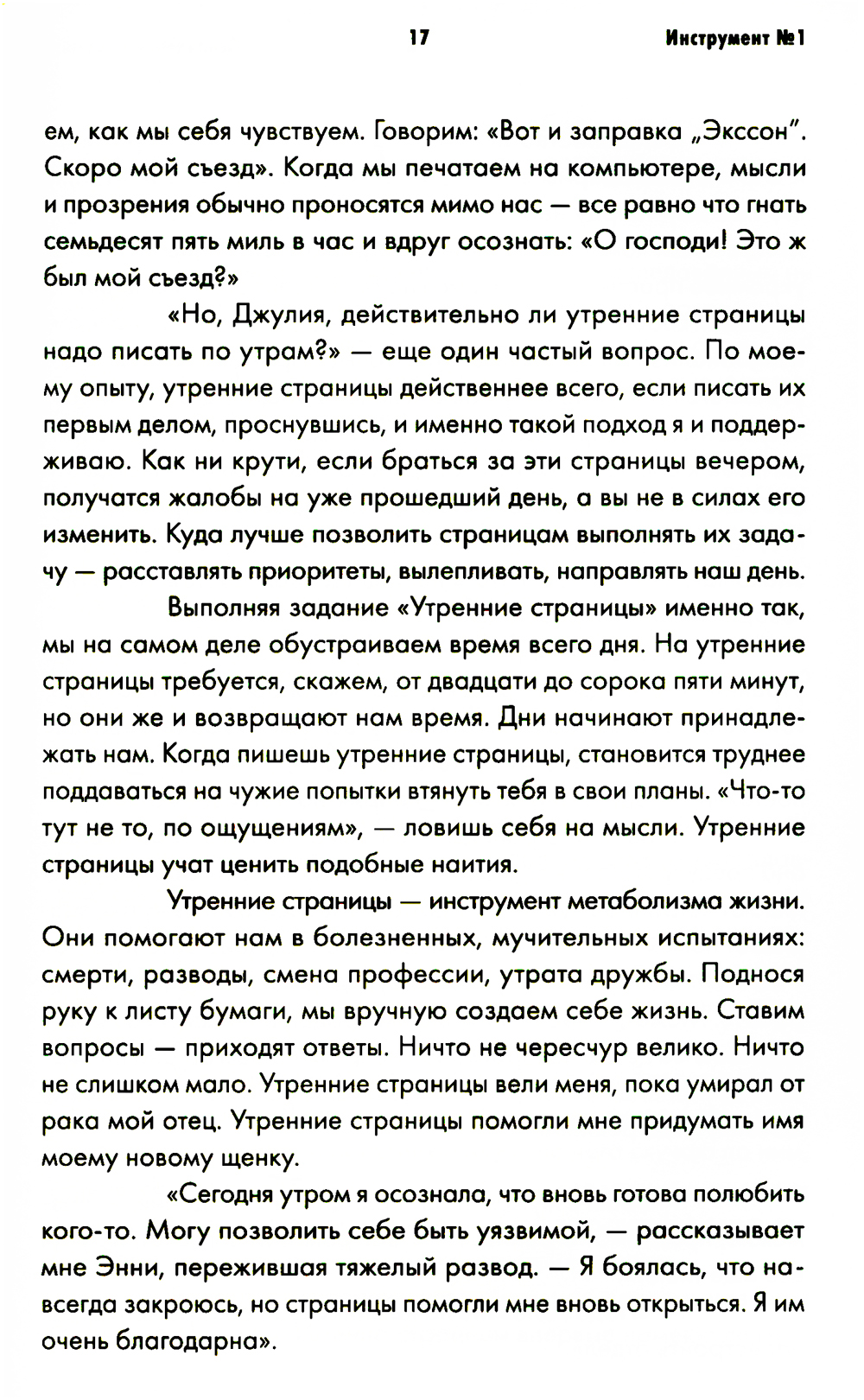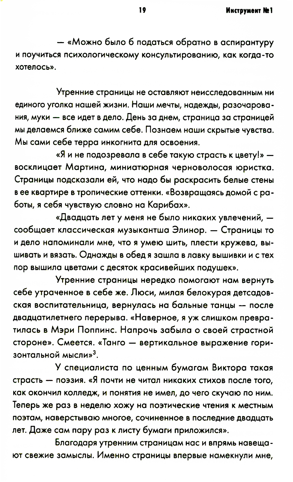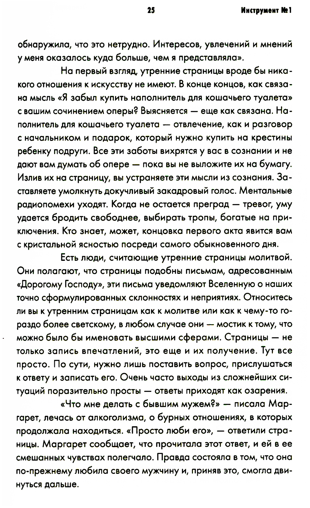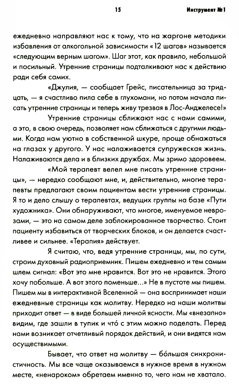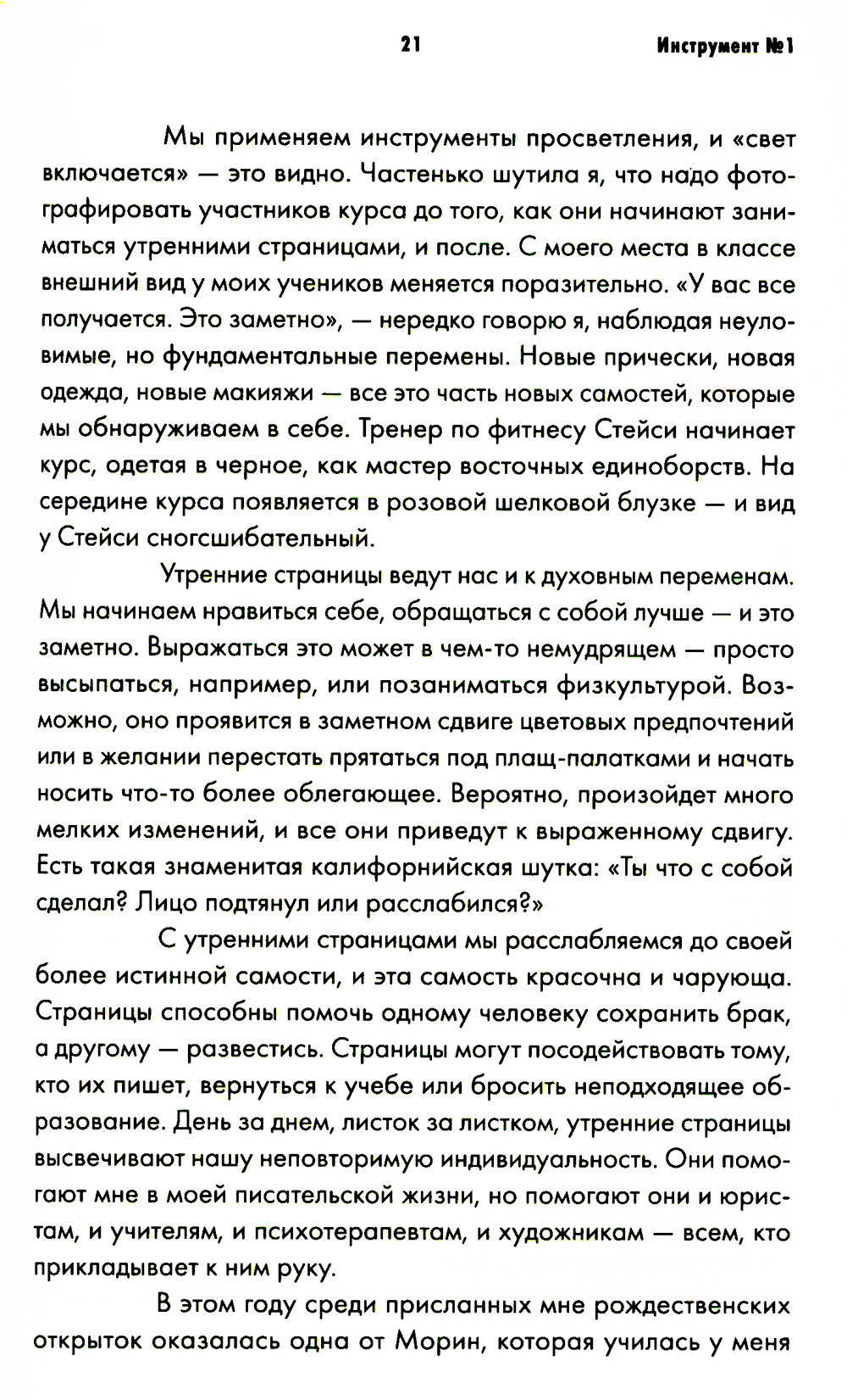 Методика, впервые описанная Джулией Кэмерон в бестселлере «Путь художника», создана, чтобы помочь поверить в свои творческие способности и самостоятельно их развить, выйти из творческого тупика и раскрыть свой потенциал. Более 110 упражнений и рекомендации, собранные в «Рабочей тетради», будут понятны начинающим и полезны для тех, кто желает пройти курс повторно, сделав упор на практическую часть.