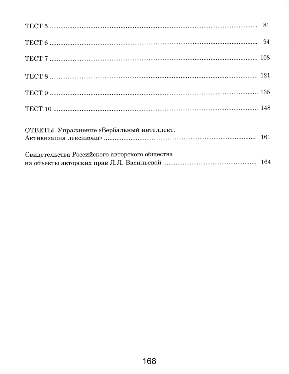 «Тренажер интеллекта для взрослых» содержит систему интеллектуального развития на основе официально зарегистрированной в РАО, Бюро регистрации авторских прав США, Канадским ведомством интеллектуальной собственности методики автора - Лидии Львовны Васильевой. Пособие представляет собой сборник тестов. В ходе выполнения простых оригинальных упражнений проходит диагностика развития тех или иных параметров интеллекта, что позволяет своевременно откорректировать подачу материала. Методика апробирована в течение 30 лет.| Издательство | Практическая медицина |
