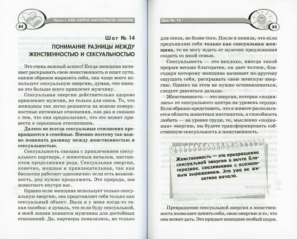 Каждая женщина мечтает встретить мужчину своей мечты, создать семью и счастливо прожить в браке всю жизнь. Авторы книги утверждают: для того чтобы эти мечты стали реальностью, необходимо всесторонне исследовать свою жизнь и освободиться от всего, что мешает вам обрести женское счастье. Эта книга - своего рода пошаговая инструкция, следуя которой, вы сможете найти своего идеального партнера, построить с ним счастливые отношения и пронести их через всю жизнь. Если ежедневно делать по одному шагу, то очень скоро вы иначе увидите окружающий мир и себя в нем, узнаете, чего в действительности хотят мужчины, научитесь общаться с ними и правильно позиционировать себя. А затем в вашей жизни начнут происходить замечательные перемены, которые непременно приведут вас к желаемому результату. Упражнения и медитации, предложенные в книге, помогут вам избавиться от негативных установок, обрести уверенность в себе и осознать, что вы прекрасная мудрая женщина, достойная любви и счастья.| Издательство | ИГ Весь |