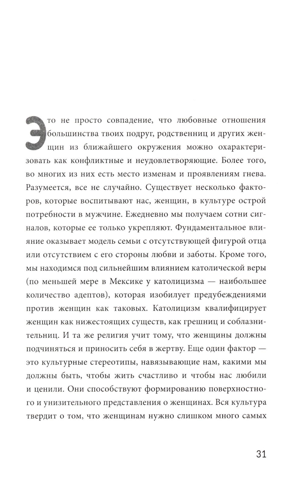 Эта книга поможет тебе перестать смотреть на отношения как на вынужденное средство от одиночества и понять разницу между удовлетворением потребностей и настоящей любовью. Ты найдешь здесь трогательные истории из жизни, тщательно продуманные упражнения и эффективные техники для поднятия самооценки, а также узнаешь, почему необходимо закрыть цикл болезненных детских переживаний. Анамар Ориуэла делится с читателями своим многолетним терапевтическим и практическим опытом, чтобы помочь каждому осознать и принять свое «я», постепенно выстраивая самые главные из всех отношений, которые могут быть у человека, - отношения с самим собой.| Издательство | Попурри |