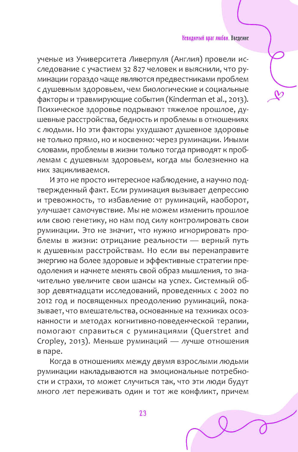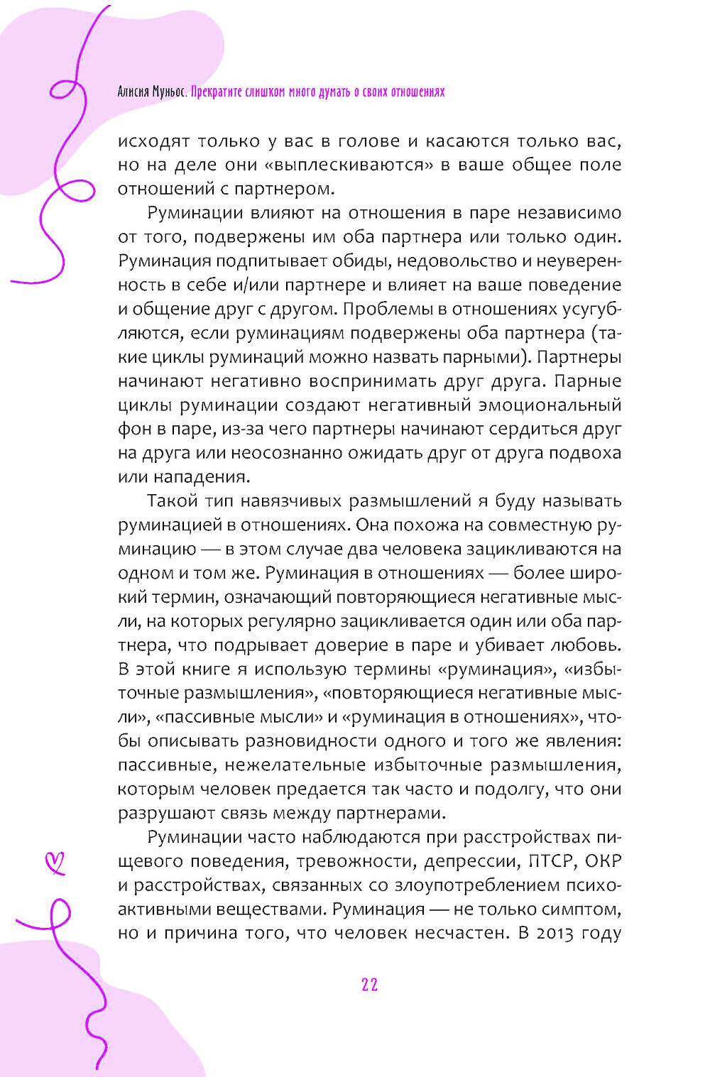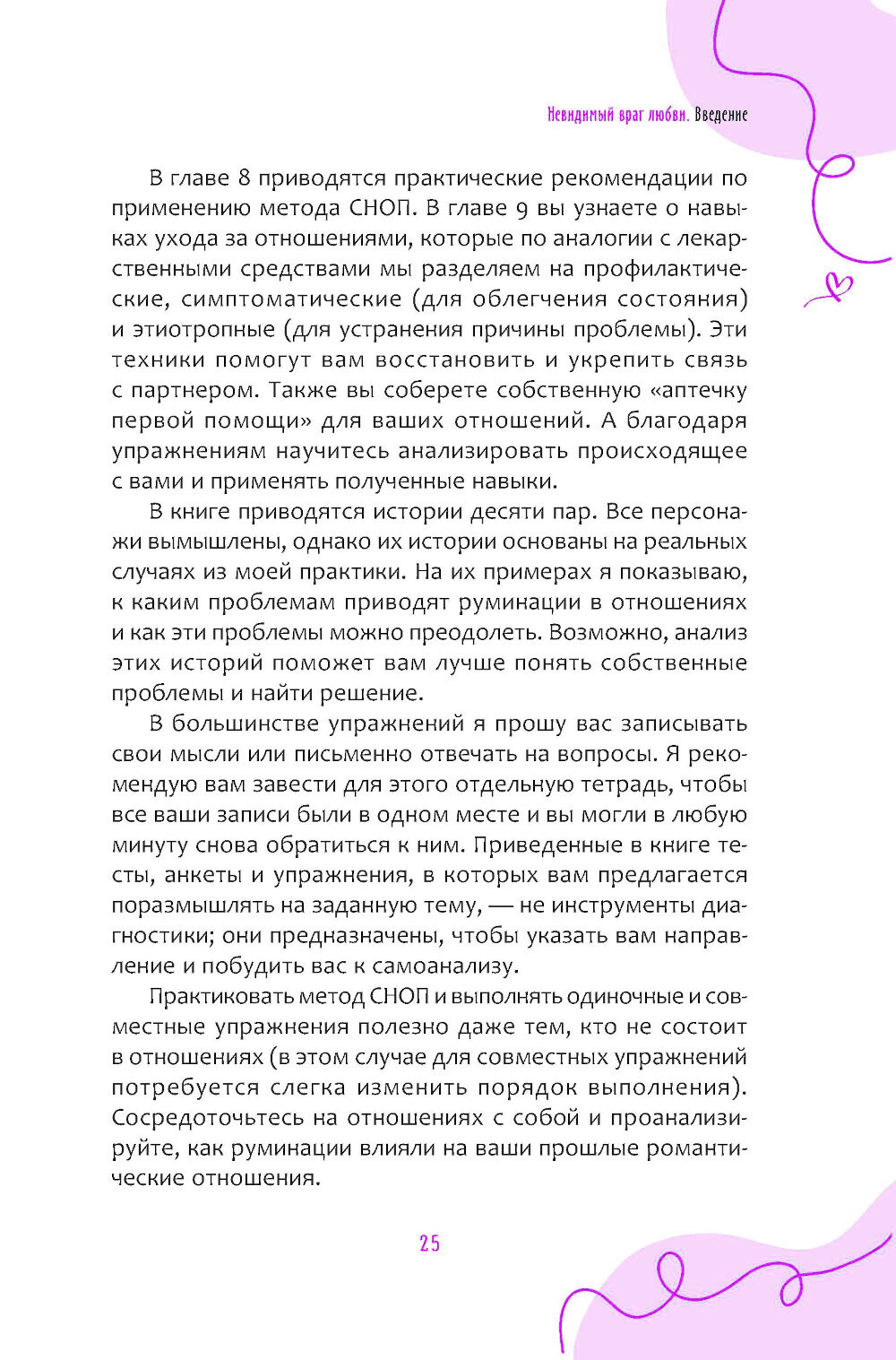 «Все начинается с одной мысли. Эта мысль - мнение, неверное толкование, прогноз или оценка - тянет за собой новые мысли. Единожды возникнув, они, подпитываемые тревожностью, уже не исчезают. Они растут и множатся, и вы начинаете гонять их по кругу. Постепенно у вас формируется новый мысленный образ партнера, и тогда вы закрываетесь друг от друга, перестаете делиться переживаниями и чувствами, в паре пропадает взаимопонимание. Вы все чаще недовольны друг другом, и вам начинает казаться, что у отношений нет будущего... Как психотерапевт, работающий с парами, я постоянно слышу эту историю. Детали отличаются, но суть всегда одинакова. Так почему же страстные и многообещающие истории любви приходят к такому финалу? Ответ прост: кто-то из партнеров начинает слишком много думать. Если вы выбрали эту книгу, то, скорее всего, уже сами знаете, как тревожные мысли вредят отношениям. И вы нашли верное руководство, чтобы все исправить».| Издательство | ИГ Весь |