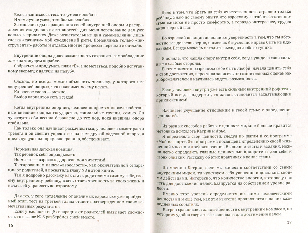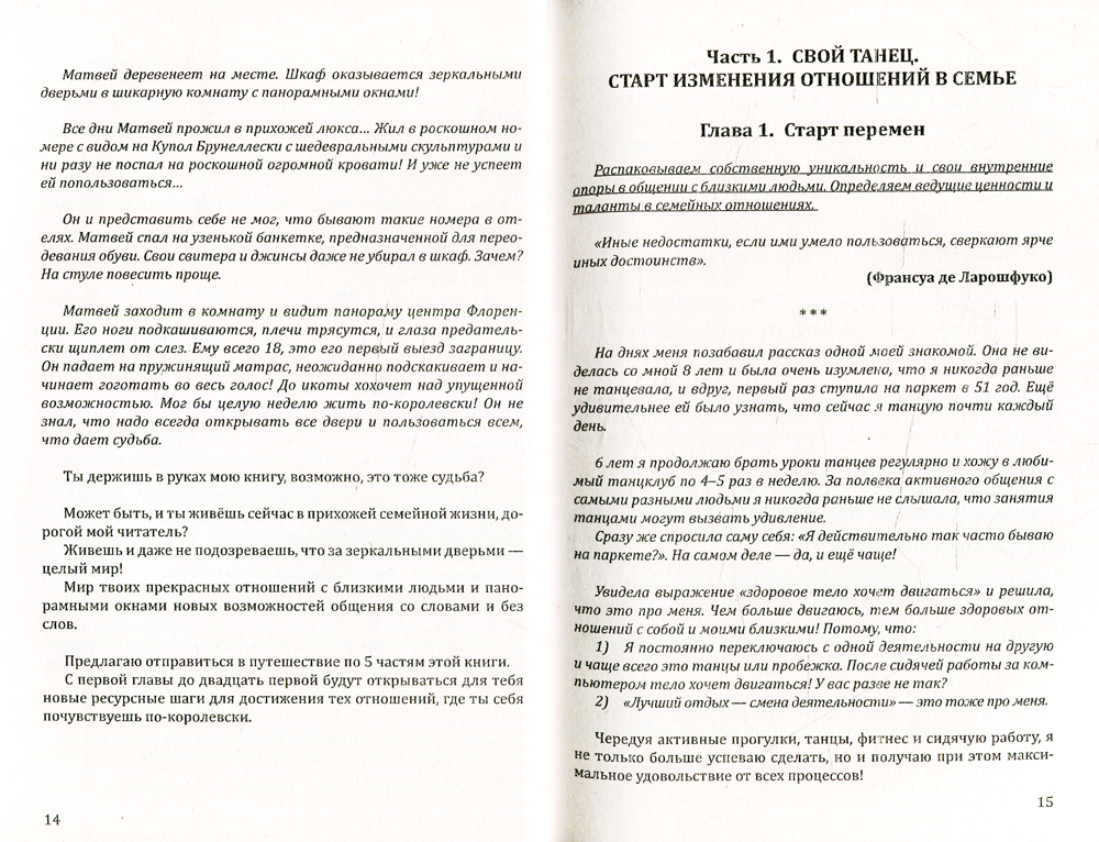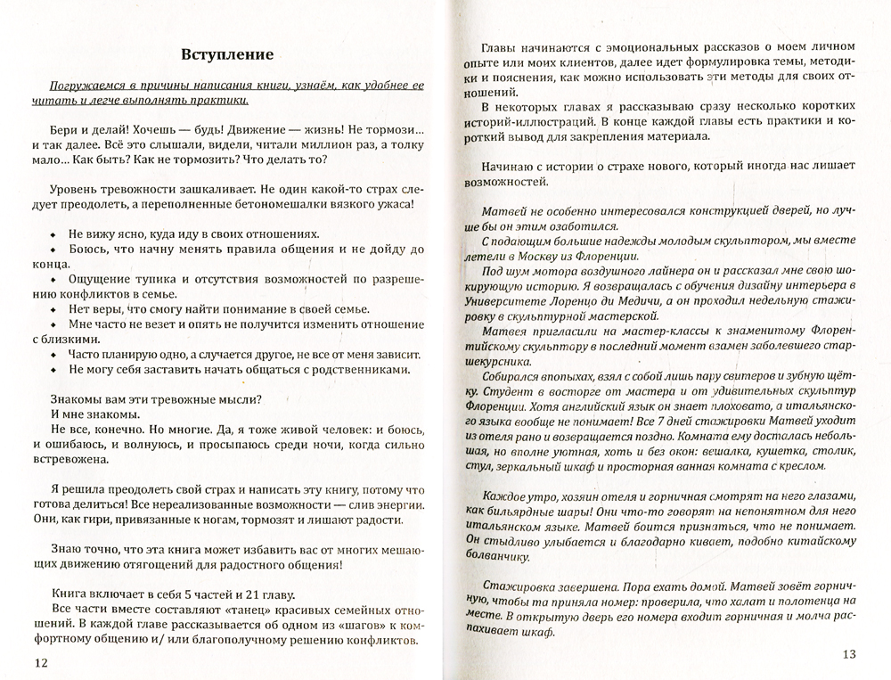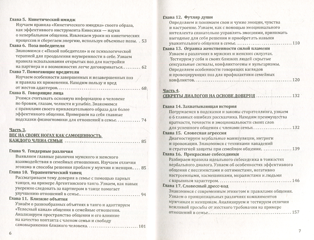 Если в ваших руках эта книга, значит, у вас есть готовность действовать и улучшать отношения в семье. Вы хотите узнать, как можно договариваться со своими родными и близкими, используя слова и без слов. И, может быть, у вас пока ещё мало опыта в теме семейных отношений и много вопросов. Что делать, если отношения с близкими людьми раздражают и их придирки надоели? Какие есть различия в диалогах с мужчинами и с женщинами? Как общаться с родными, когда нет ни сил, ни вдохновения? Какие есть способы просить и отказывать без чувства вины? Как вернуть свою целостность и чувствовать себя уверенно? Мануэла Арапова делится своими профессиональными знаниями психолога и предлагает исцелить отношения взрослых членов семьи подобно красивому танцу. Все описанные в книге методики она уже благополучно использовала сама и щедро ими делится. Прочитав книгу, вы сможете наладить отношения в вашей семье, обрести уверенность в себе и душевный покой.| Издательство | Амрита-Русь |