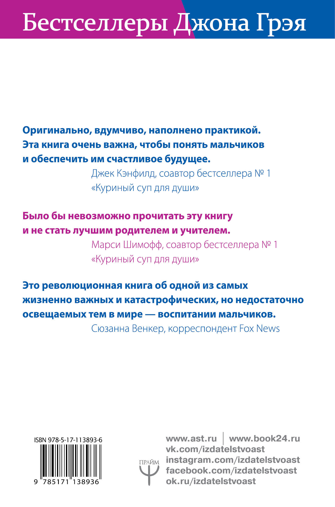 Если в вашей семье есть дети, не ждите, пока они вырастут, наломают дров, прочитают мегабестселлер Джона Грэя "Мужчины с Марса, женщины с Венеры" и скажут с облегчением: "Так вот в чем было дело!" Помогите им сразу вырасти счастливыми и готовыми к взрослой жизни. Новая книга Джона Грэя - о мальчиках: о становлении мужского характера, физиологии развития, здоровье, интеллекте, роли отца и матери и, конечно, об опасностях, которые поджидают мальчишку в период взросления, ведь взрослые мужчины - это случайно выжившие мальчики. Родители найдут здесь множество рецептов преодоления кризисов в жизни сыновей. Но если у вас растет дочь - обязательно тоже прочтите эту книгу. Она поможет вашей девочке лучше понимать "этих мальчишек", а вам - вырастить прекрасную женщину, которая будет счастлива в семейной жизни и передаст эту эстафету вашим внукам.| Издательство | ИЗДАТЕЛЬСТВО "АСТ" |