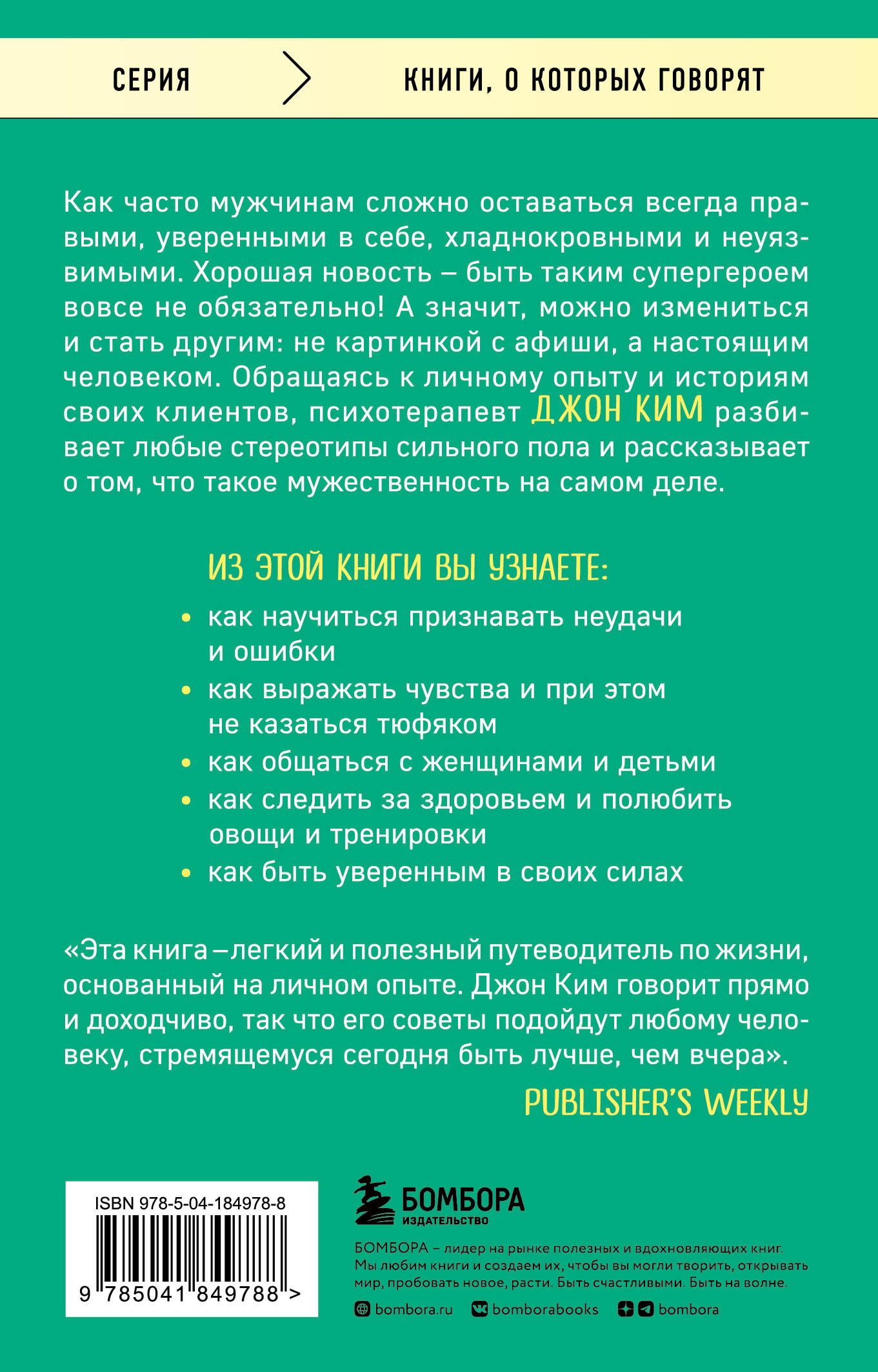 Стать мужчиной не так просто, как включить свет. И это не связано с возрастом или взрослением. Вы не становитесь мужчиной лишь потому, что вам исполняется восемнадцать лет. Быть мужчиной - это образ жизни; это повседневный выбор, который раскрывает ваши потенциальные возможности. Престижный офис, дорогая машина и щетина не сделают из вас заботливого отца, любящего мужа и крутого бизнесмена. А вот советы психотерапевта Джона Кима помогут стать лучшей версией самого себя, как когда-то сделал и он. Из этой книги вы узнаете: • Как научиться признавать неудачи и ошибки. • Как выражать чувства и при этом не казаться тюфяком. • Как общаться с женщинами и детьми. • Как следить за здоровьем и полюбить овощи и тренировки. • Как быть уверенным в своих силах. Об авторе Джон Ким, называющий себя «сердитым психотерапевтом» - создатель собственной терапевтической программы, автор популярного блога, его книги входят в ТОП-150 лучших по версии сайта Amazon.| Издательство | ООО "Издательство "Эксмо" |