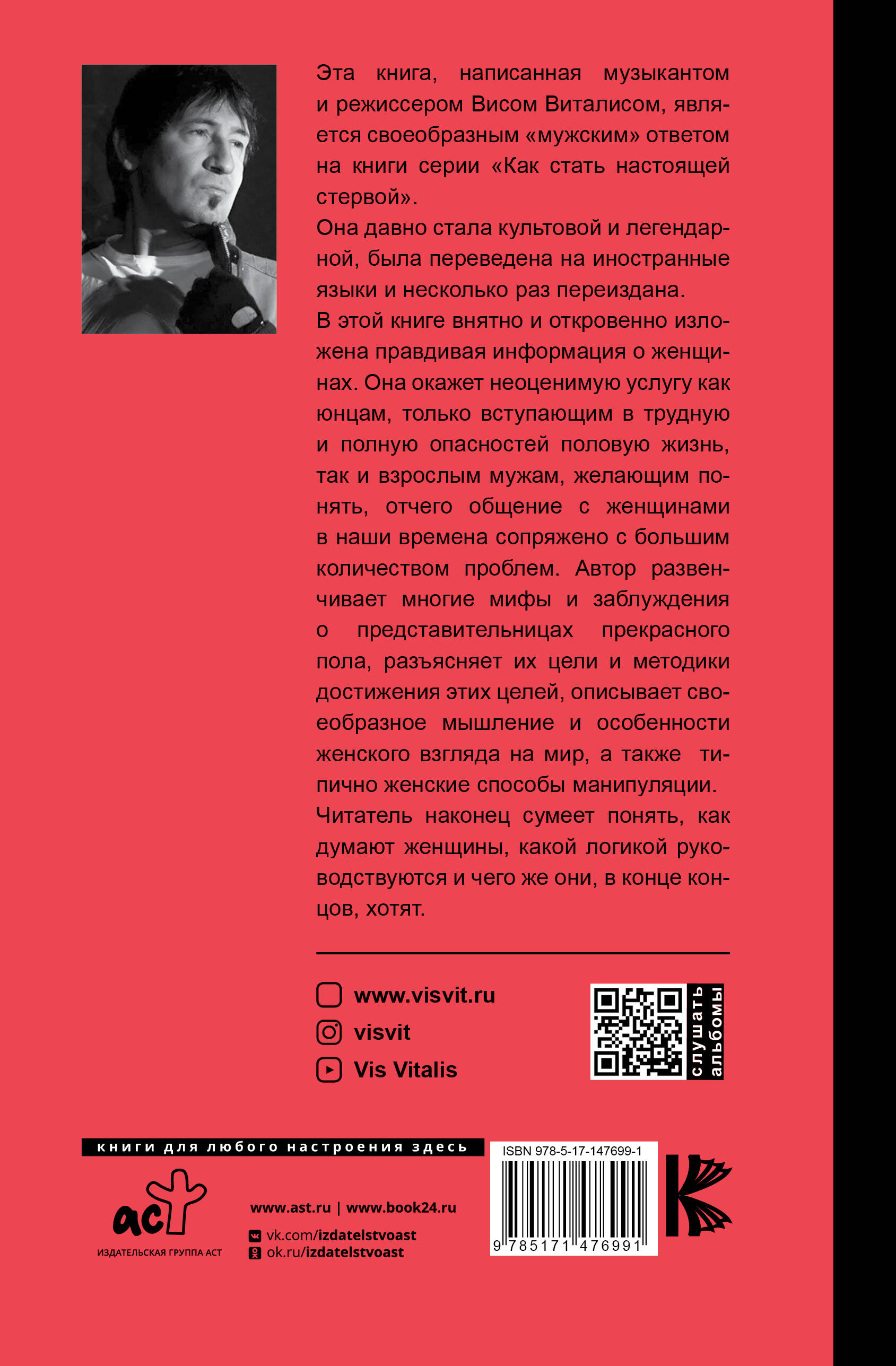 Эта книга, написанная музыкантом и режиссером Висом Виталисом, является своеобразным "мужским" ответом на книги серии "Как стать настоящей стервой". Она давно стала культовой и легендарной, была переведена на иностранные языки и несколько раз переиздана. В этой книге внятно и откровенно изложена правдивая информация о женщинах. Она окажет неоценимую услугу как юнцам, только вступающим в трудную и полную опасностей половую жизнь, так и взрослым мужам, желающим понять, отчего общение с женщинами в наши времена сопряжено с большим количеством проблем. Автор развенчивает многие мифы и заблуждения о представительницах прекрасного пола, разъясняет их цели и методики достижения этих целей, описывает своеобразное мышление и особенности женского взгляда на мир, а также типично женские способы манипуляции. Читатель наконец сумеет понять, как думают женщины, какой логикой руководствуются и чего же они, в конце концов, хотят.| Издательство | АСТ |