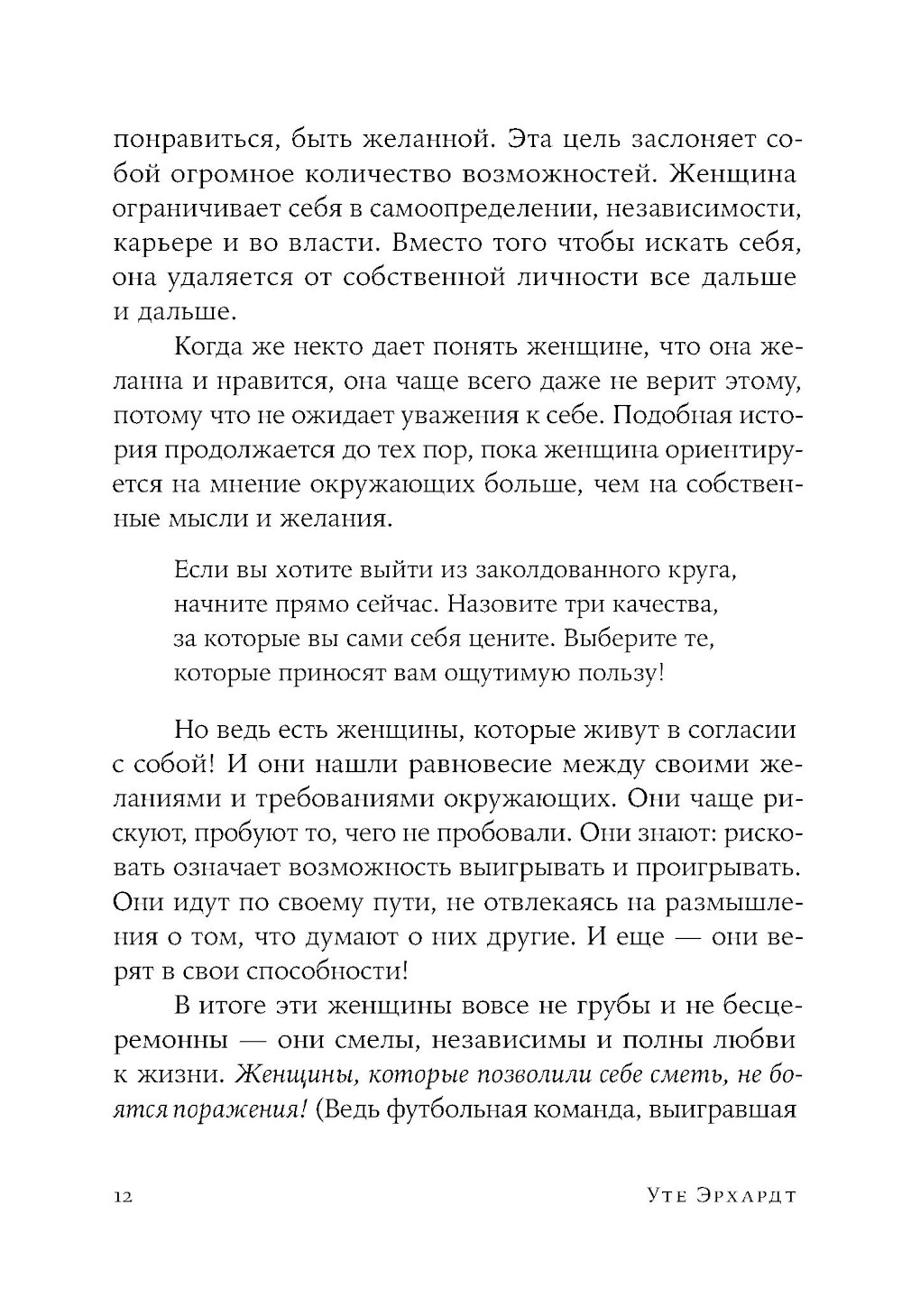Женщинам с раннего детства внушают, что они должны быть «хорошими». Их главное предназначение в жизни - быть хорошей матерью и женой. Со всем остальным справятся мужчины. И женщины, сами того не осознавая, становятся зависимыми. Они отказываются от своих истинных желаний и устремлений в угоду интересов своих близких. Главное - быть покладистой и желанной. Эта цель заслоняет собой огромное количество возможностей. Женщина ограничивает себя в самоопределении, независимости, карьере и во власти. Вместо того чтобы искать себя, она старается понравиться окружающим. Автор этой книги, рассказав множество жизненных историй, доказывает: кроткие и покорные женщины, отказавшись ради семьи и детей от образования, карьеры и вообще какого-либо развития, теряют свою индивидуальность и становятся неинтересными своим партнерам. Пора уже очнуться и сказать себе: «Я у себя одна. Чего я хочу на самом деле? Что чувствую? Куда иду?», - стать независимой личностью, начать реализовывать свой творческий потенциал и двигаться к новым свершениям.| Издательство | Альпина Паблишер |