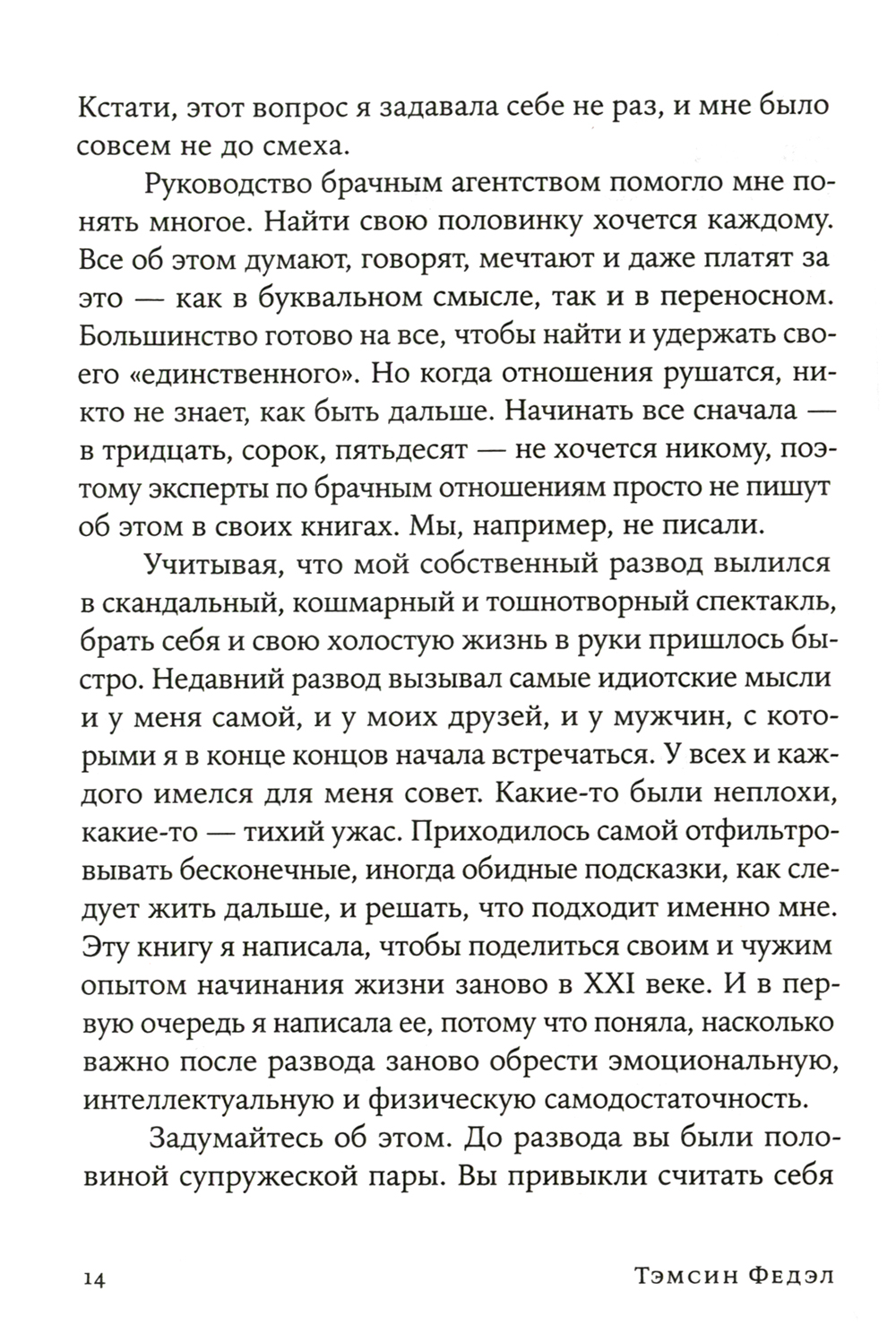 Пережить разрыв отношений и не сойти с ума от обиды, боли и одиночества. Правильно реагировать на фальшивое сочувствие, бестактные расспросы, сплетни и разговоры за спиной. Не утратить веру в себя, в людей и любовь. Не наделать глупых ошибок, о которых потом придется жалеть. Не разучиться доверять другим и уметь открываться новым отношениям. Книга известной телеведущей и писательницы Тэмсин Федэл, которая вместе с мужем владела брачным агентством, а потом прошла через мучительный развод, но нашла в себе силы жить дальше и стать счастливой, обязательно поможет тем, кто оказался в похожей ситуации и не может найти выход.| Издательство | Альпина Паблишер |