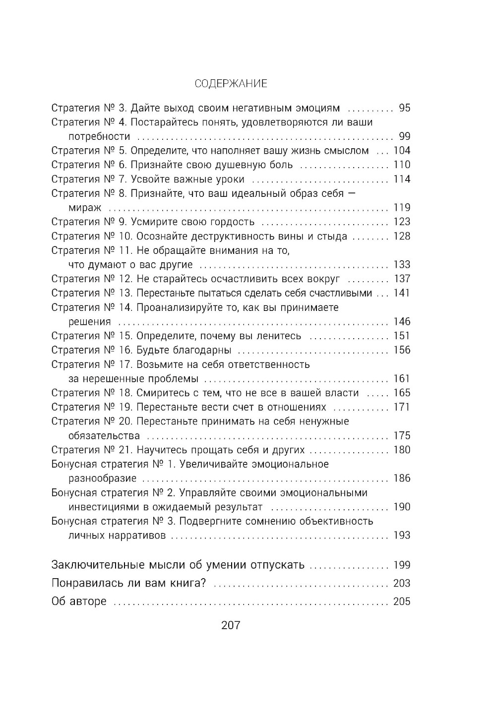 Не можете отпустить злость, обиды и сожаления? Измучились от болезненных воспоминаний? Цепляетесь за вещи, которые приносят лишь моральные страдания? Тогда эта книга для вас. Из нее вы узнаете: • за какие 20 вещей обычно держатся люди (и в результате чувствуют себя несчастными) • почему так трудно отпустить негативные мысли и травмирующие воспоминания • как поставить на место своего внутреннего критика и заглушить его деморализующий голос • почему мы идеализируем прошлое и страдаем в настоящем (и как разорвать этот порочный круг) • почему погоня за счастьем дает обратный эффект • один из самых простых способов выбросить из своей жизни все ненужное (которым вы можете сразу же воспользоваться) Если вы устали от эмоционального бремени, книга поможет вам наконец от него освободиться.| Издательство | Попурри |