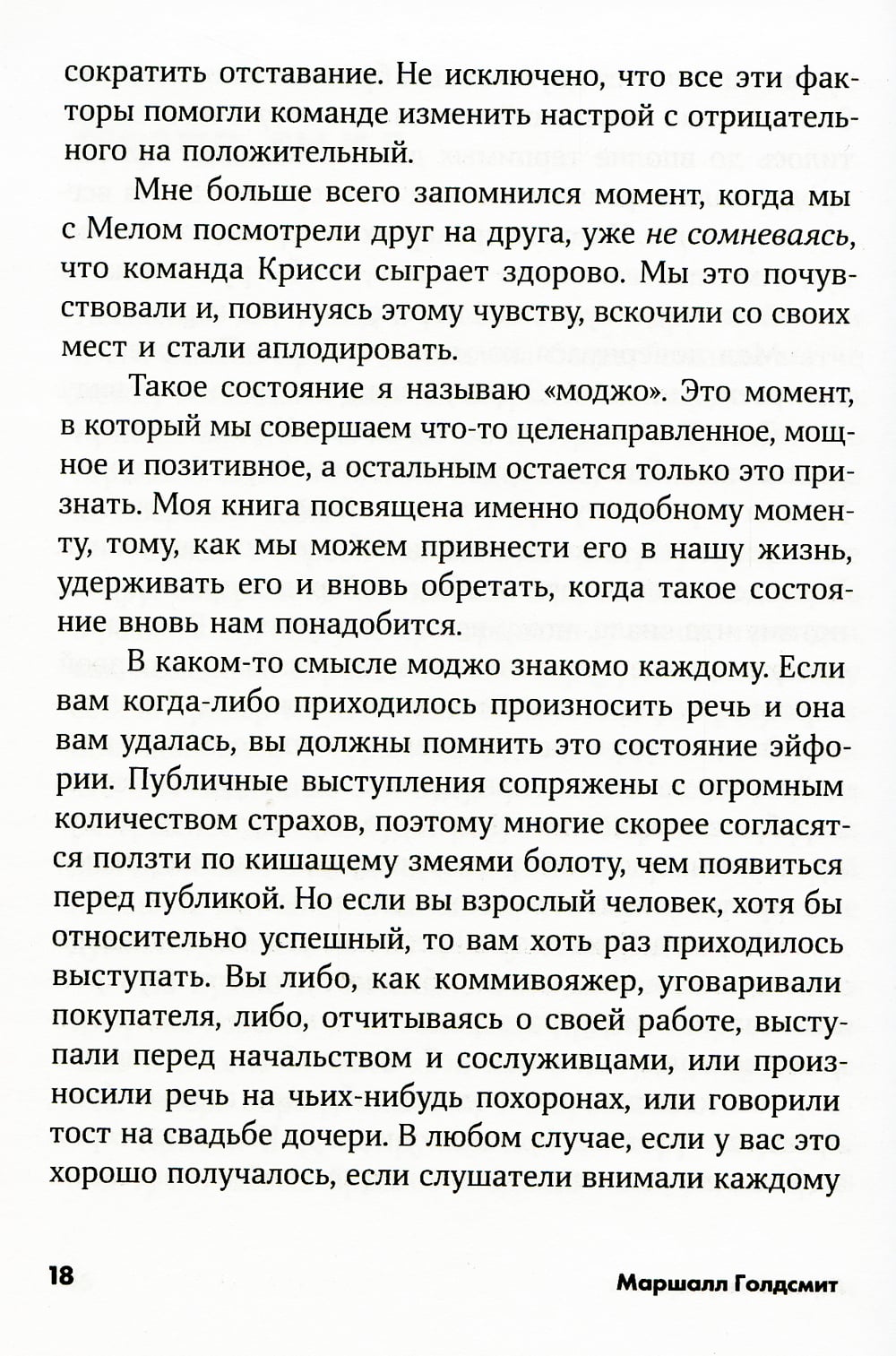 У вас бывают периоды в жизни, когда любое дело получается легко и просто, вы успешно решаете сложные задачи и при этом чувствуете себя «в форме»? А бывают периоды, когда все валится из рук и вы начинаете сомневаться в собственных способностях? То, что отличает лучшую версию себя от себя-неудачника, автор назвал «моджо». Моджо - это положительный настрой, особое расположение духа, которое ведет вас к победе, позволяет получать удовольствие от работы и жизни. Спортсмены иногда называют это «прухой», некоторые говорят, что «попали в струю». Известный психолог и автор бестселлеров Маршалл Голдсмит предлагает простой и четкий план действий по тому, как получить моджо, как его сохранить и как вернуть, если вы его потеряли. Книга адресована всем, кто хочет чаще быть лучшей версией себя.| Издательство | Альпина Паблишер |