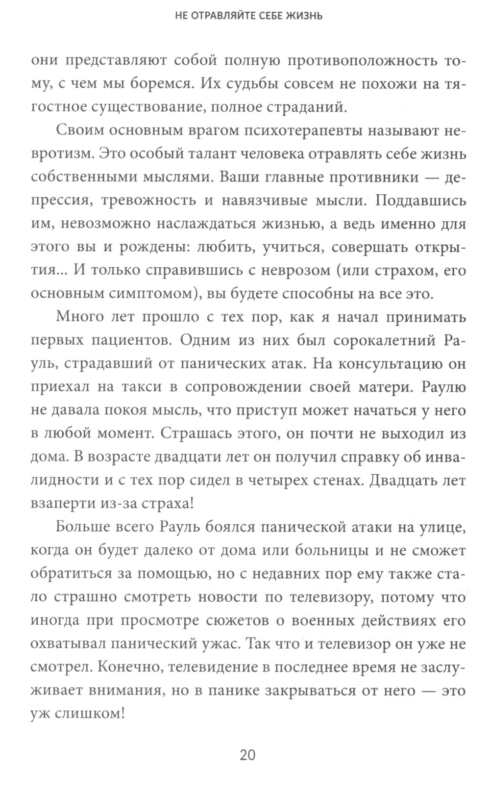 Известный испанский психолог Рафаэль Сантандреу предлагает читателям доступный и научно доказанный практический метод достижения уверенности и счастья. В своем неповторимом стиле, сочетая многолетний опыт работы в психотерапии с личными открытиями, автор показывает, какие изменения в образе мыслей и действиях нам нужны, чтобы превратиться в безмятежных неунывающих жизнелюбов. Теория дополнена реальными историями исцеления. «Не отравляйте себе жизнь» стала настольной книгой для сотен тысяч человек и помогла им стать еще счастливее.| Издательство | Попурри |