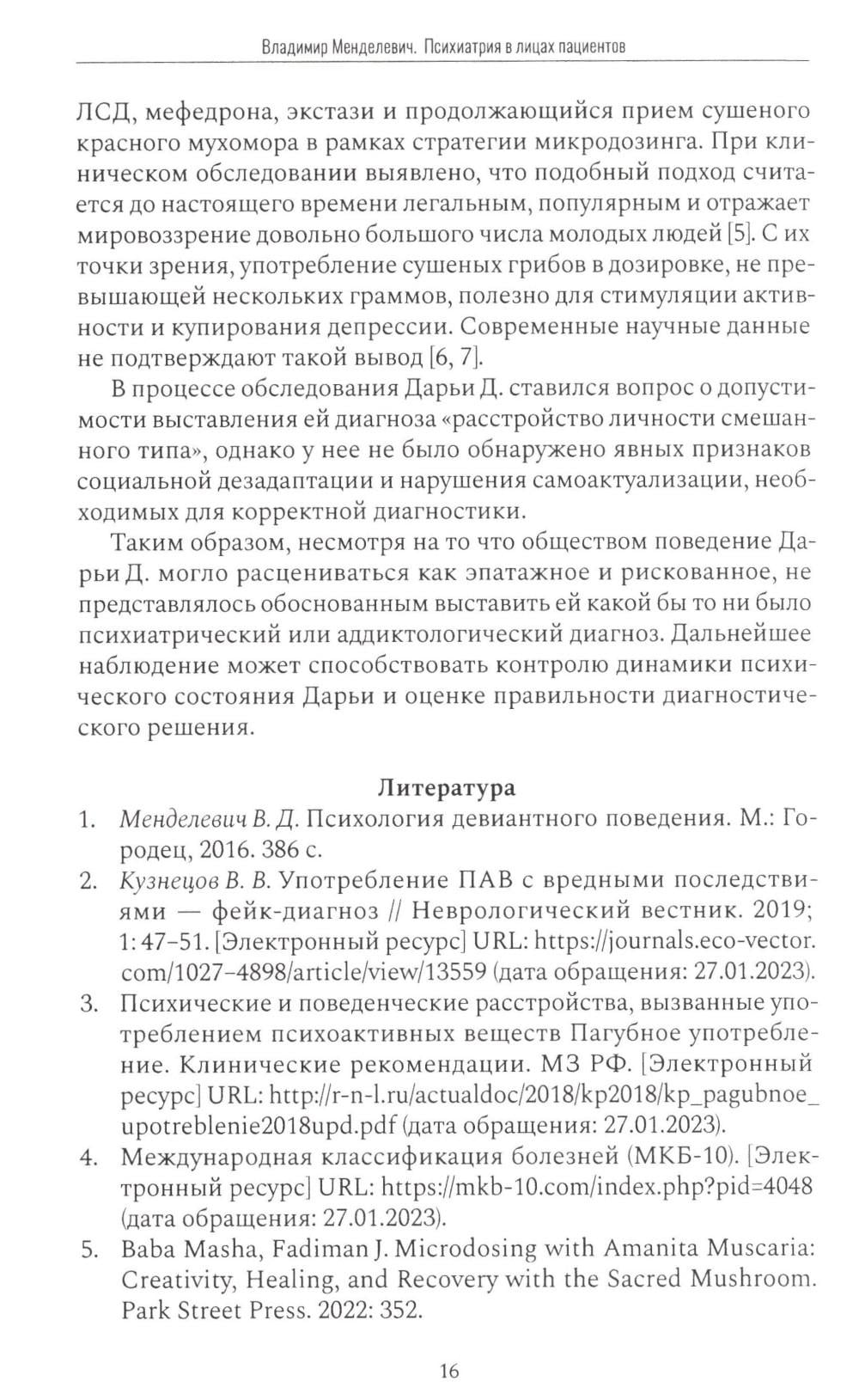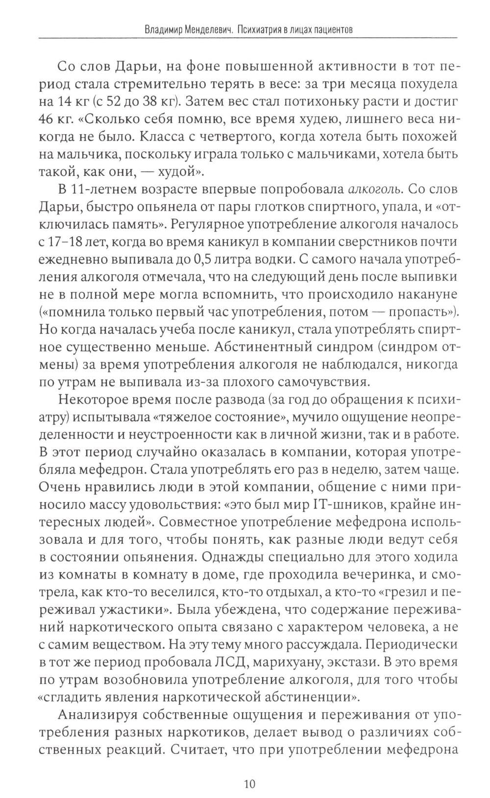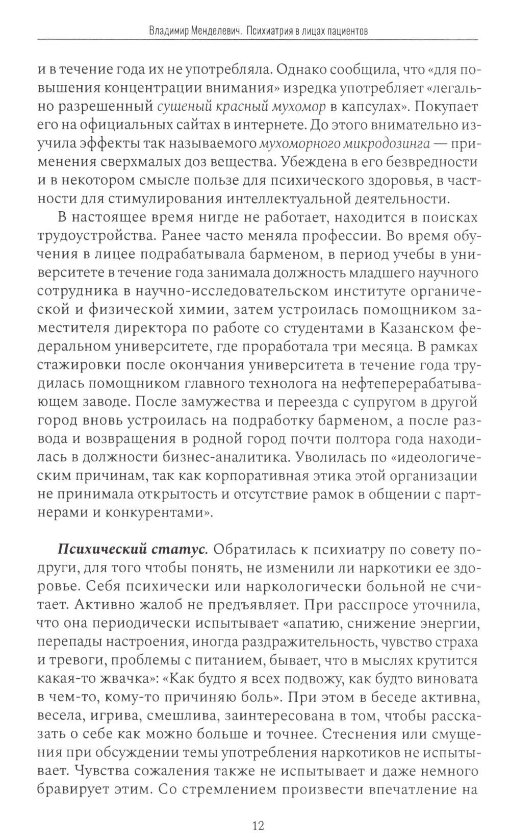 НЕЗАКОННОЕ ПОТРЕБЛЕНИЕ НАРКОТИЧЕСКИХ СРЕДСТВ, ПСИХОТРОПНЫХ ВЕЩЕСТВ, ИХ АНАЛОГОВ ПРИЧИНЯЕТ ВРЕД ЗДОРОВЬЮ, ИХ НЕЗАКОННЫЙ ОБОРОТ ЗАПРЕЩЕН И ВЛЕЧЕТ УСТАНОВЛЕННУЮ ЗАКОНОДАТЕЛЬСТВОМ ОТВЕТСТВЕННОСТЬ. Обычно психиатрия предстает перед читателем в виде учебников, монографий, научных статей, в которых автор сосредоточивается на описании психопатологических симптомов, закономерностей проявления различных психических и поведенческих расстройств. Нередко за повествованием о психиатрии теряется сам человек, страдающий душевным недугом.Но есть и иной способ познакомиться с психиатрией: изучить ее сквозь призму конкретного пациента, уникальных случаев болезни и увидеть за симптомами лицо и душу. Именно такому подходу и посвящена книга «Психиатрия в лицах пациентов». В книге собраны необычные, трудные для дифференциальной диагностики клинические примеры из жизни конкретных больных, наблюдавшихся у нас на протяжении последних лет. Надеемся, что книга заинтересует коллег - психиатров, психотерапевтов, медицинских психологов, наркологов, неврологов и всех, кому небезразлична судьба пациентов и кто стремится к объективности в психиатрии.| Издательство | Городец |