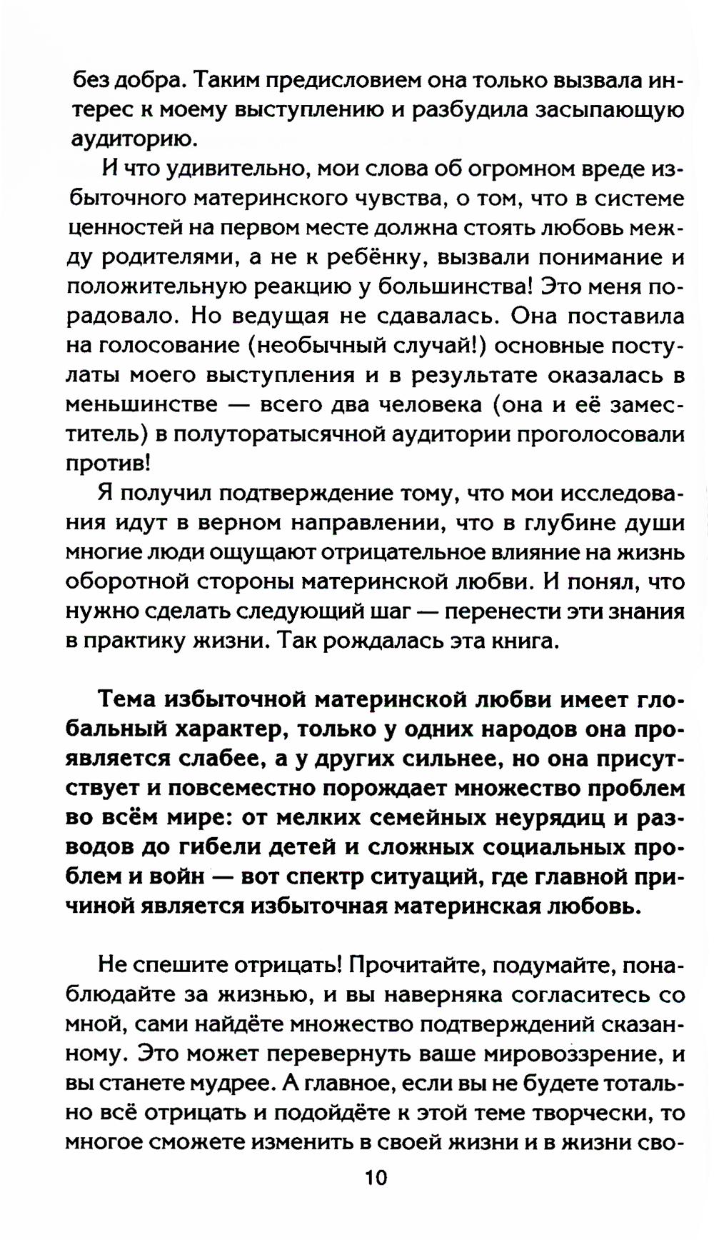 В этой книге автор рассматривает ту сторону материнской любви, которая приносит много страданий и детям, и родителям, и обществу в целом. Избыточность материнской любви весьма актуальна, ее последствия вы можете встретить практически в каждой семье, ведь такая стратегия воспитания детей передается из поколения в поколение. Благодаря этой книге вы сможете изменить себя и повлиять на жизнь своих детей и родителей, изменить отношения с близкими к лучшему, мудро расставить приоритеты и просто стать счастливыми.| Издательство | Центрполиграф |
