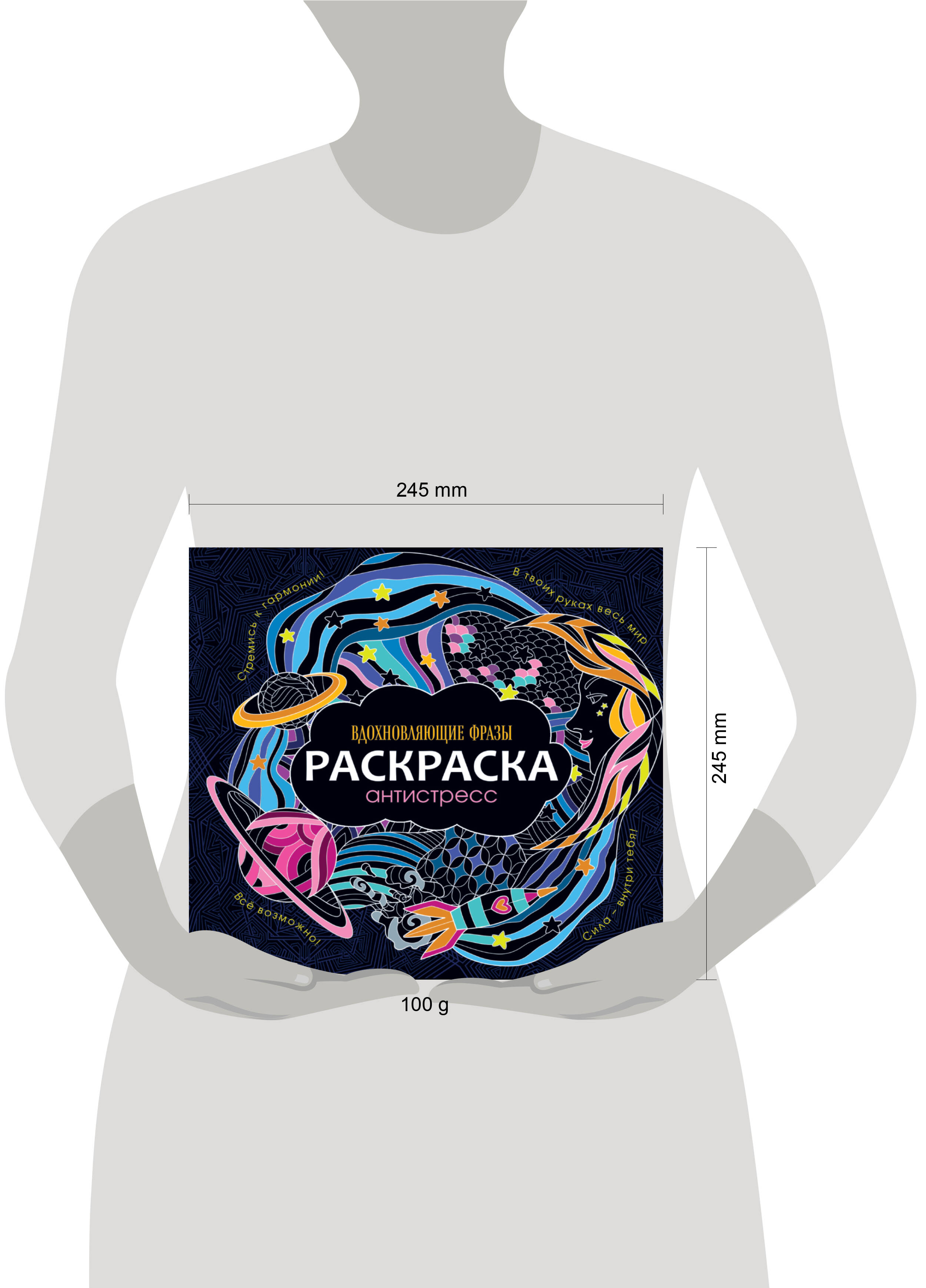 Аннотация: РАСКРАСКА-АНТИСТРЕСС 245х245. ВДОХНОВЛЯЮЩИЕ ФРАЗЫ
