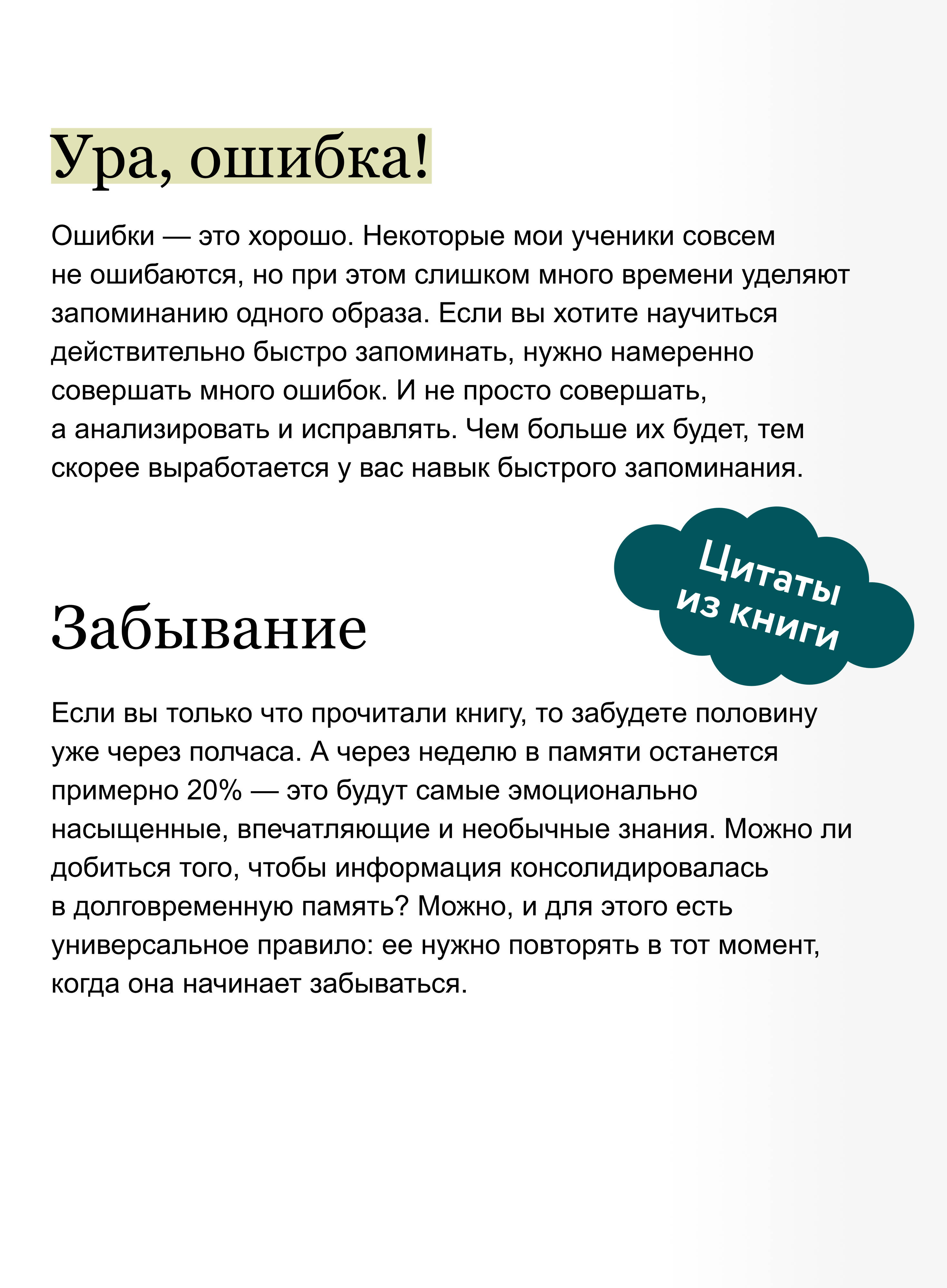 От мнемониста с 10-летним опытом и 220 тыс. подписчиков в TikTok Научит быстро запоминать тексты, цифры, иностранные слова Поможет добиться успеха с помощью развитой памяти| Издательство | МИФ ООО |