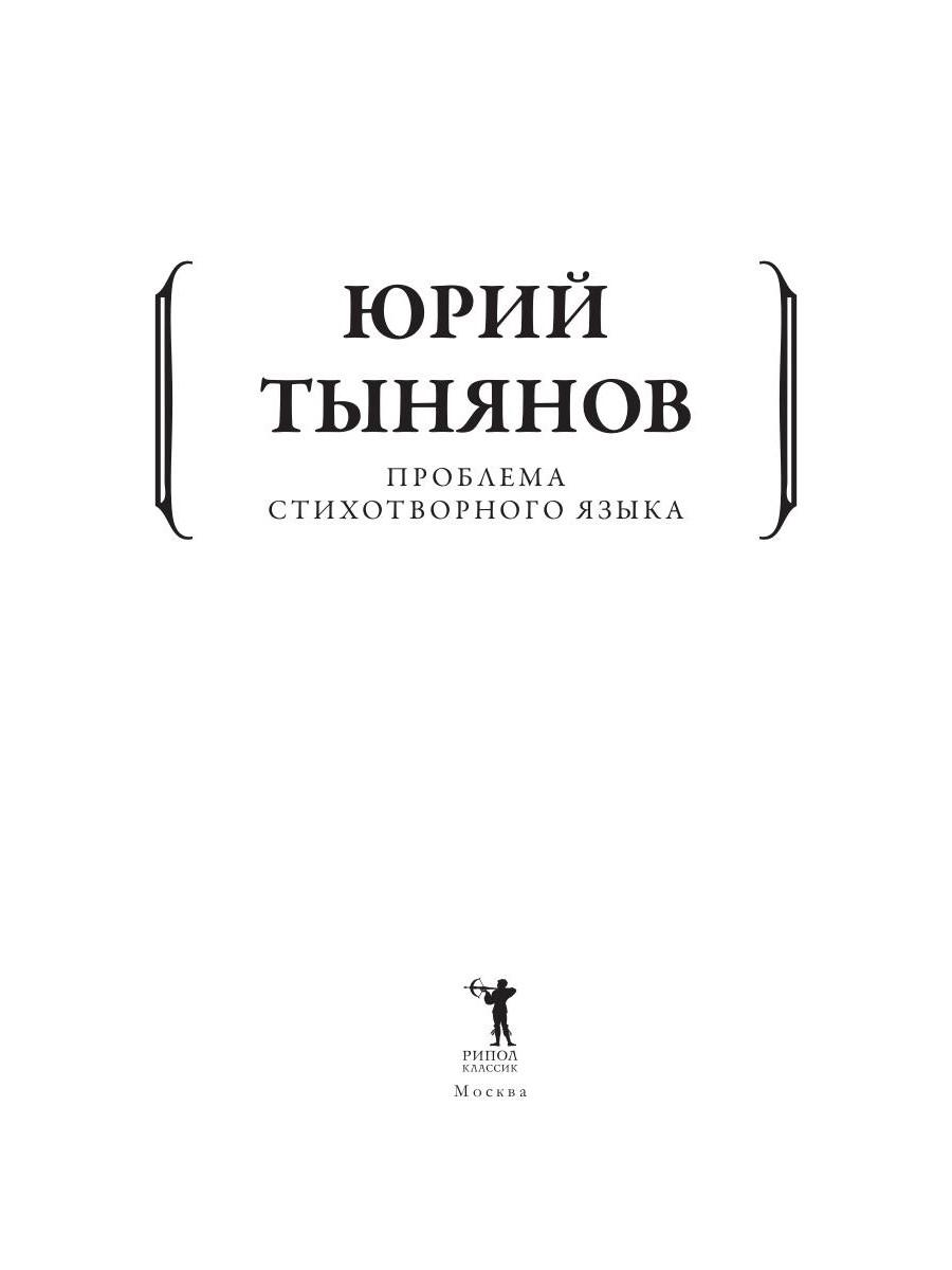 Юрия Тынянова (1894-1943) можно считать одним из основателей литературоведения, которое отделилось в начале XX века от литературной критики. Книга Тынянова «Проблема стихотворного языка» (1924), прежде всего, определяет особенности поэзии как особого вида искусства. Ритм и смысл, содержание - вот о чем будет говорить исследователь, приводя смелое множество примеров как из русской, так и иностранной литературы, споря и соглашаясь с другими филологами, лингвистами и переводчиками. Тынянов раскрывает специфику стиха разных эпох и учит нас любви к поэзии и литературе в целом.| Издательство | Рипол Классик |