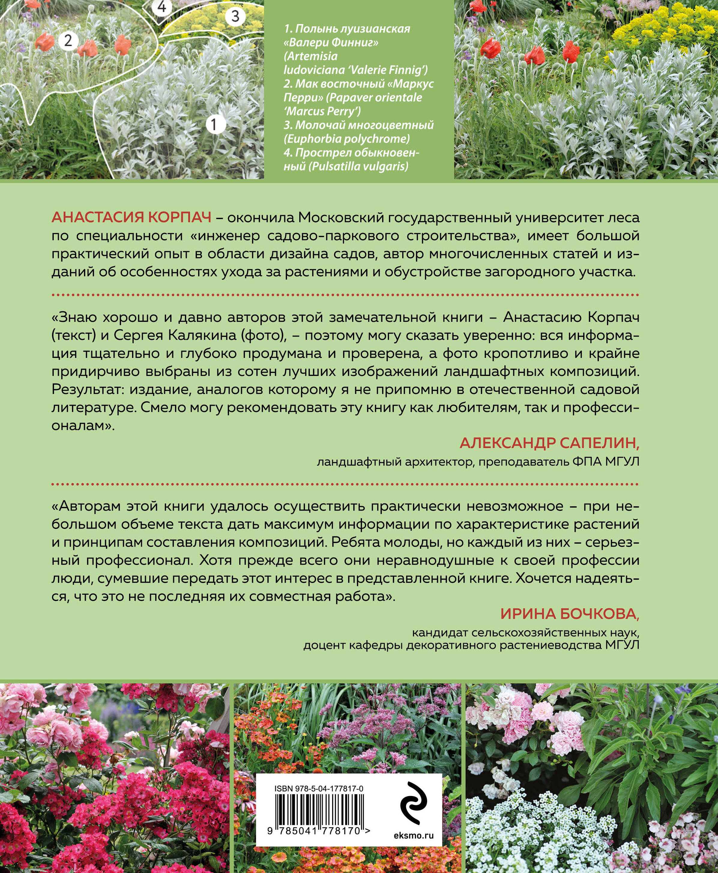Шикарный цветник - мечта любого садовода. В этой книге собраны композиции самых эффектных цветников от профессионального ландшафтного дизайнера - Анастасии Корпач. Приятные особенности: - Эта неповторимая коллекция композиций подойдет как для опытного, так и для начинающего цветовода, ведь в ней подробно разобраны сочетания растений, их основные особенности и характеристики. - Весенний яркий цветник или украшение тенистого уголка сада, контрастный или в мягких пастельных тонах, - в этом сборнике найдется цветник на любой случай. - Вдохновляйтесь пышным многообразием дизайнерских решений и создавайте свои уникальные композиции!| Издательство | ООО "Издательство "Эксмо" |