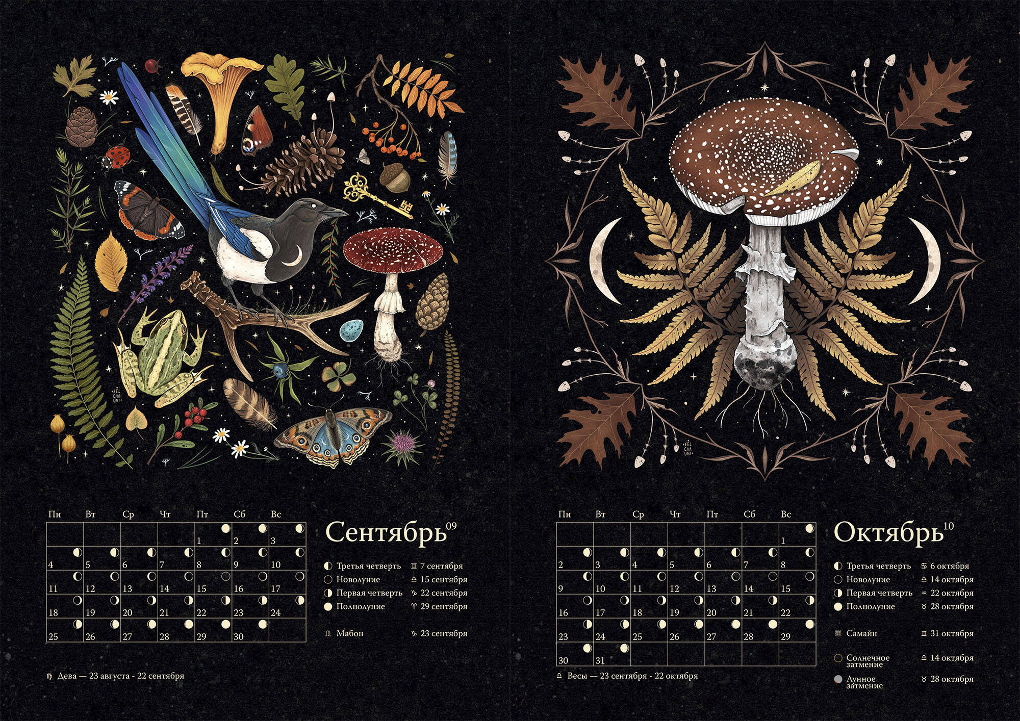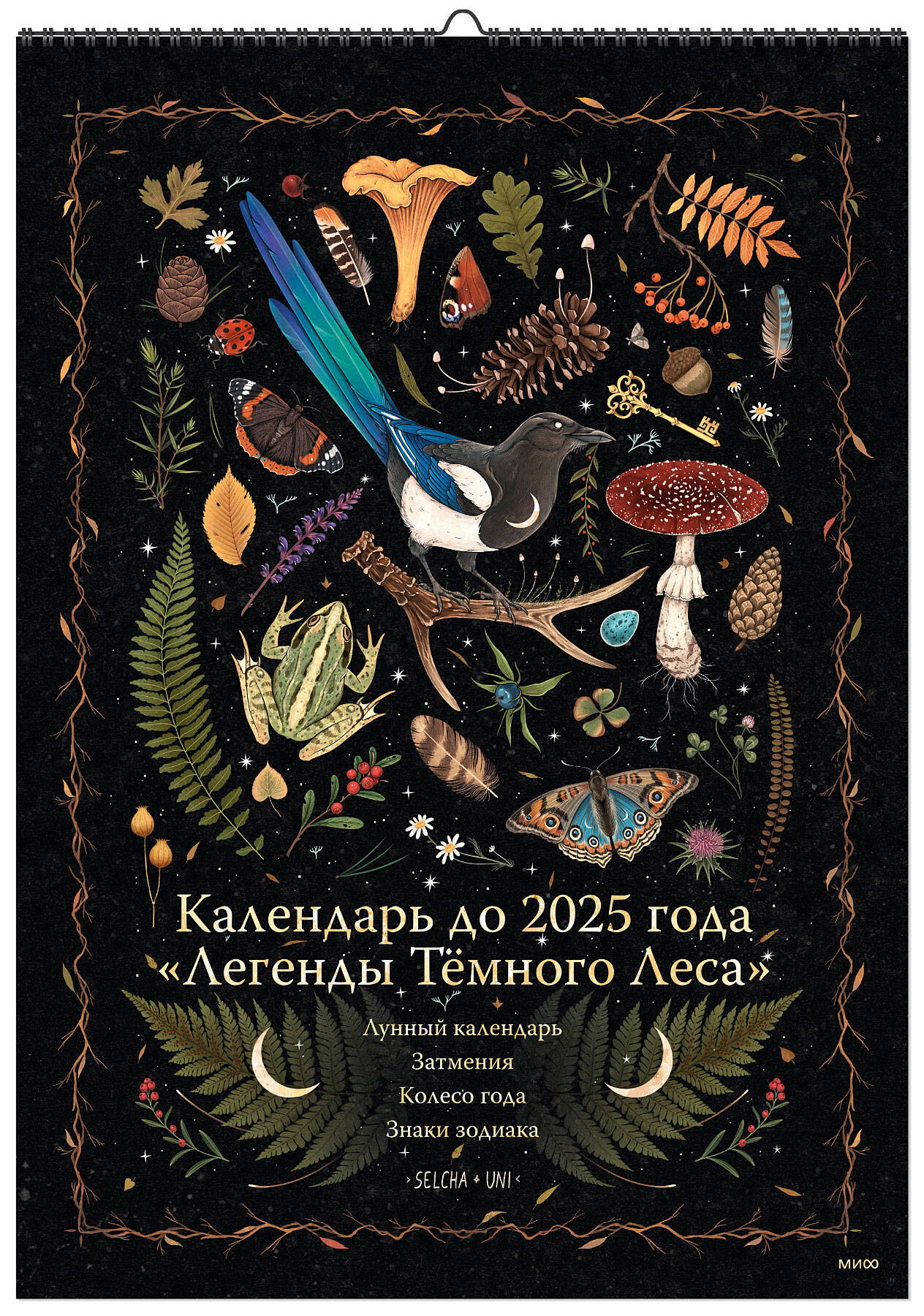 Настенный календарь на 2023-2025 гг. в стиле cosy darkness от иллюстратора Selcha Uni - с фазами луны, праздниками Колеса Года и со сказочным лесом на обложке. Дизайнер-иллюстратор Selcha Uni вдохновляется природными мотивами, выпускает мерч, рисует арты на обложки. В календаре 12 иллюстраций, которые автор рисовала в течение года. Ботанические мотивы и волшебные существа, лес и дикая природа, луна и звезды. А также: - Фазы луны на каждый день года. - Новолуния, полнолуния и четверти. - Солнечные и лунные затмения. - Праздники Колеса Года. - Знаки Зодиака. Календарь поможет жить в ритме луны и природных циклов, наблюдать за небесными светилами, планировать и воплощать идеи в жизнь.| Издательство | МИФ ООО |