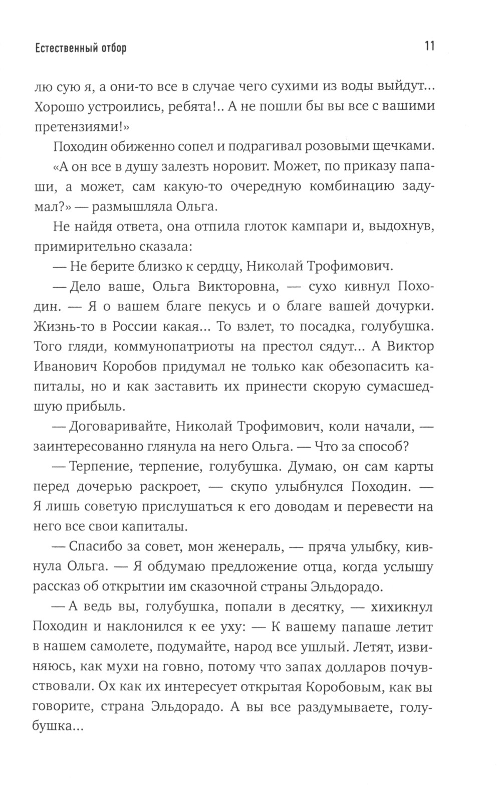 Герой этого романа - "герой нашего времени", человек, прошедший суровую школу жизни, после длительных скитаний возвращается домой и оказывается один на один с суровой и непредсказуемой для него реальностью, в новой стране, так непохожей на ту прежнюю. Какова же теперь его Родина? На этот вопрос отвечает писатель, показывая сегодняшнюю Россию без прикрас, в которой Естественный отбор происходит, увы, не всегда по Дарвину, ибо очень часто в нем выживает не сильнейший, а подлейший.
