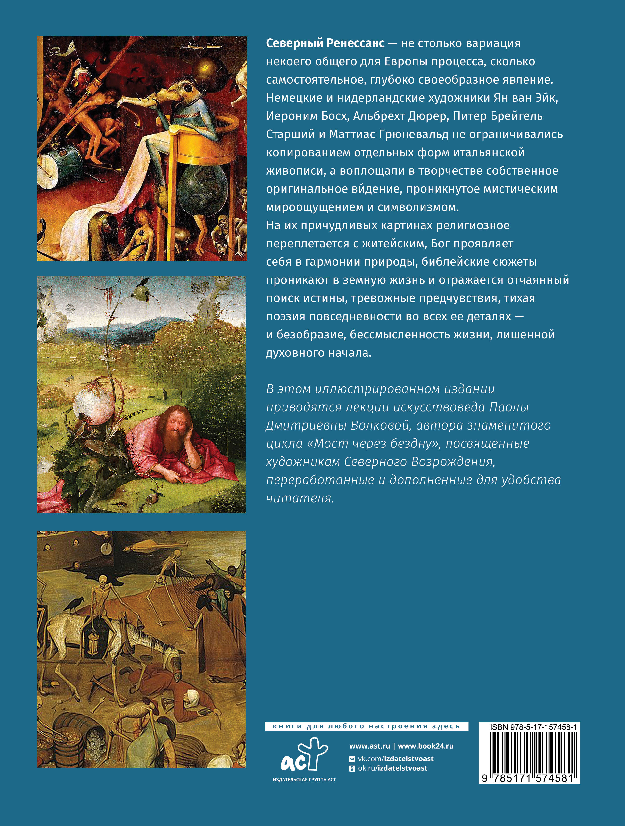 Северный Ренессанс - не столько вариация некоего общего для Европы процесса, сколько самостоятельное, глубоко своеобразное явление. Немецкие и нидерландские художники Ян ван Эйк, Иероним Босх, Альбрехт Дюрер, Питер Брейгель Старший и Маттиас Грюневальд не ограничивались копированием отдельных форм итальянской живописи, а воплощали в творчестве собственное оригинальное ви дение, проникнутое мистическим мироощущением и символизмом. На их причудливых картинах религиозное переплетается с житейским, Бог проявляет себя в гармонии природы, библейские сюжеты проникают в земную жизнь и отражается отчаянный поиск истины, тревожные предчувствия, тихая поэзия повседневности во всех ее деталях - и безобразие, бессмысленность жизни, лишенной духовного начала. В этом иллюстрированном издании приводятся лекции искусствоведа Паолы Дмитриевны Волковой, автора знаменитого цикла "Мост через бездну", посвященные художникам Северного Возрождения, переработанные и дополненные для удобства читателя. Книга для тех, кто ценит искусство и хочет получить по-настоящему ценный подарок к себе в библиотеку.| Издательство | Издательство "АСТ" |