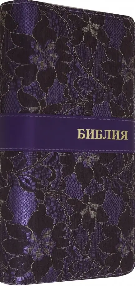 Переплет с тонкой вышивкой, молния, "золотой" обрез с голографическим напылением, закладка, индексы для поиска библейских книг.