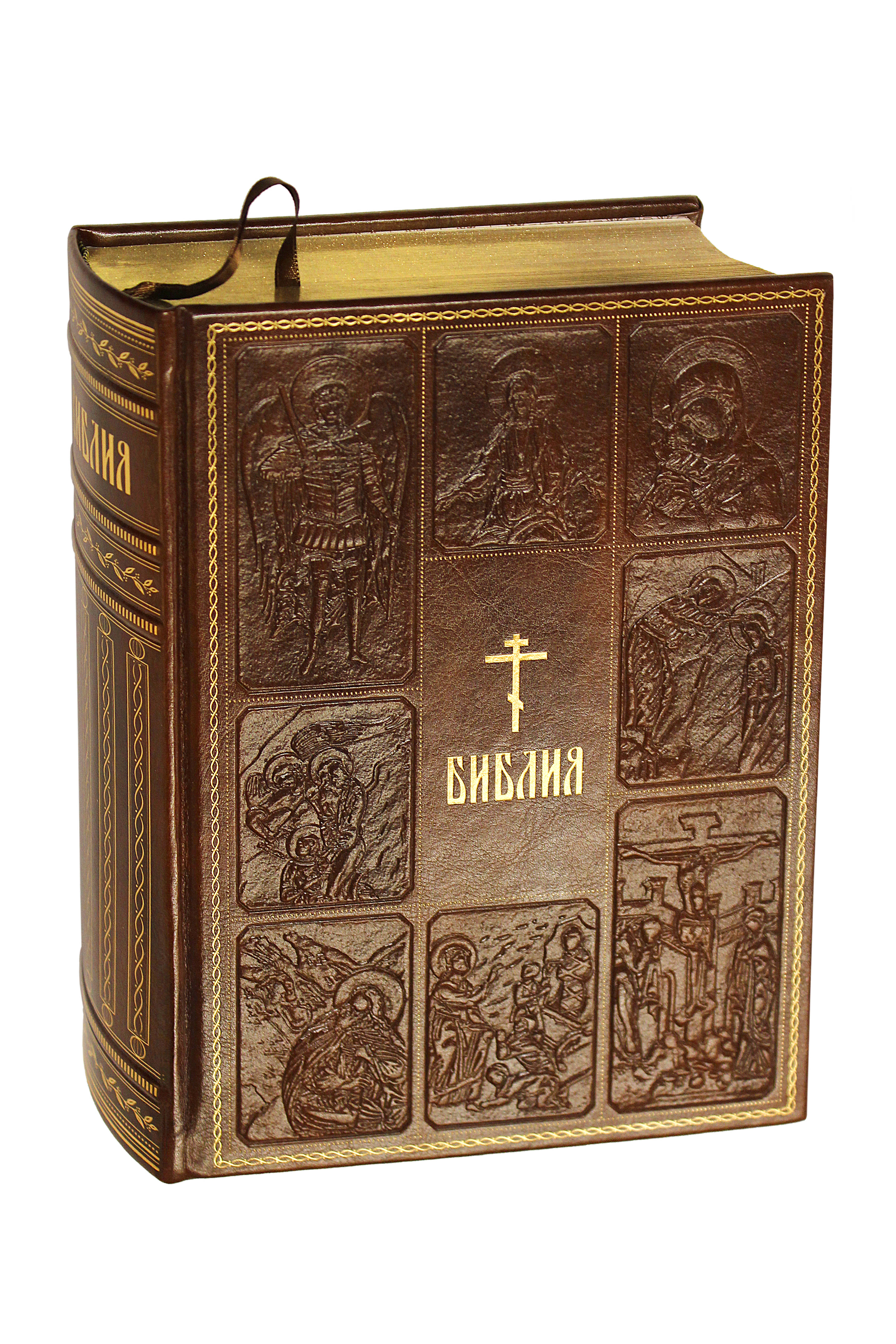 Аннотация: Библия. Книги Священного Писания Ветхого и Нового Завета, с параллельными местами, с цветными иллюстрациями, синодальный перевод, в кожаном переплете (с грифом РПЦ)