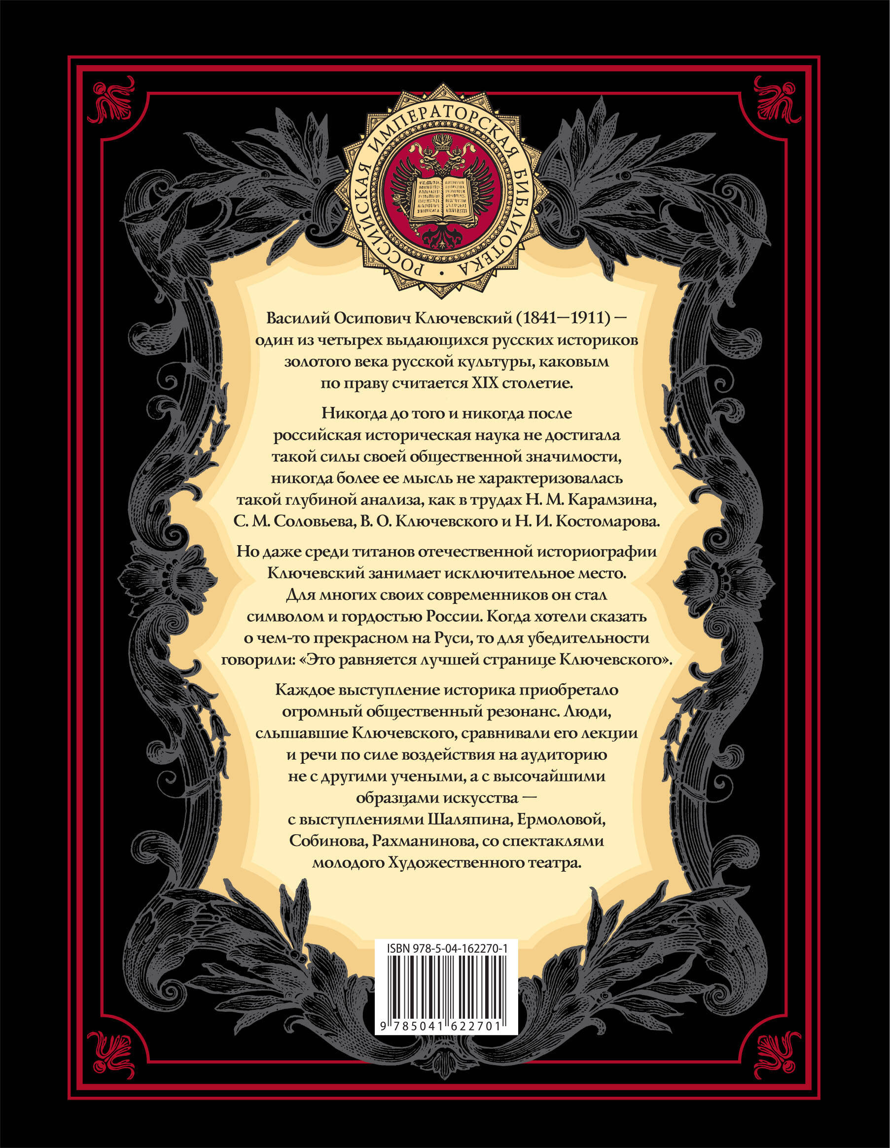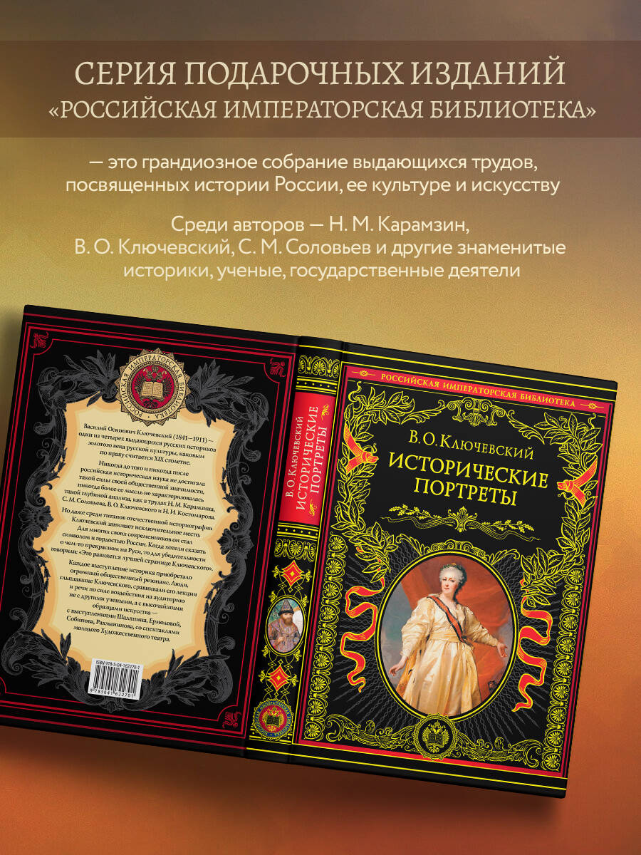 «История - это не учительница, а надзирательница: она ничему не учит, но сурово наказывает за незнание уроков». Это высказывание великого русского историка, профессора Московского университета Василия Осиповича Ключевского давно ушло в народ, воплощая собой не только традиции отечественной историографии, но и отношение русского человека к истории. Заслуженный профессор, ученик и преемник С. М. Соловьева, Ключевский прославился в академических кругах как блестящий лектор, собиравший большие аудитории. Он был деятельным членом многих научных обществ, но история и преподавание ее молодым поколениям оставались смыслом его жизни - свою последнюю лекцию Ключевский прочитал за полгода до кончины и до самого конца работал над статьями о крепостном праве. В эпоху, когда историческая наука достигла невиданной общественной значимости, великий историк не мог добровольно оставить свой высокий пост. В плеяде гениев XIX века - «золотого века» русской культуры - В. О. Ключевский по праву занимает место рядом с А. С. Пушкиным, Л. Н. Толстым, П. И. Чайковским, В. Г. Белинским. Уже при жизни он стал всенародным любимцем и гордостью России. Настоящее издание знакомит читателя с Ключевским-портретистом - в его монументальных «Исторических портретах» собрана целая галерея образов: среди них и правители России - Иван Грозный, Петр I, императрицы Елизавета Петровна и Екатерина II; и государственные деятели - князья В. В. Голицын и А. Д. Меншиков; и светила русской поэзии - А. С. Пушкин, М. Ю. Лермонтов. Серия «Российская императорская библиотека» - это грандиозное собрание выдающихся образцов отечественной мысли и словесности. Издания, вошедшие в серию, представляют собой лучшее в великом духовном наследии нашей страны. Это труды, созданные знаменитыми историками, учеными, великими государственными деятелями и посвященные тысячелетней истории России, ее культуре и искусству, военной славе, многовековым народным обычаям и деяниям выдающихся представителей нашего Отечества. Прекрасная возможность составить свою домашнюю библиотеку из великих трудов о великой стране. Каждая книга серии богато проиллюстрирована многочисленными цветными и черно-белыми иллюстрациями, которые дают возможность в полном объеме увидеть то, что составляет сокровищницу культурного наследия нашей страны!| Издательство | ООО "Издательство "Эксмо" |