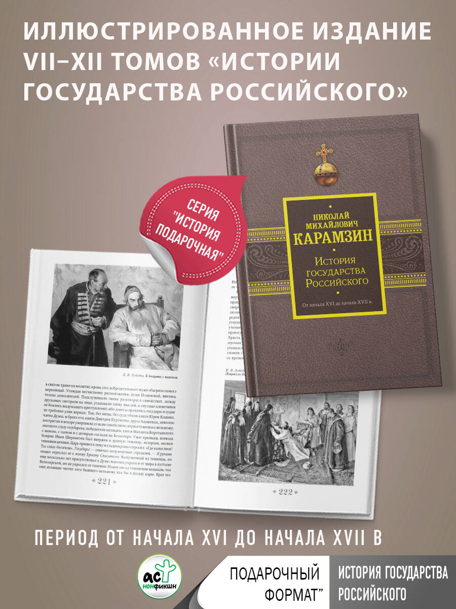 Николай Михайлович Карамзин (1766-1826) - поэт, писатель, издатель "Московского журнала" и "Вестника Европы", последний историограф России, автор "Бедной Лизы" и "Истории государства Российского" в 12-ти томах. Перед вами оригинальное, богато проиллюстрированное издание VII-XII томов "Истории государства Российского" Николая Михайловича Карамзина, охватывающее период от начала XVI до начала XVII в. В книге повествуется о правлении Василия Иоанновича, Ивана Грозного, Федора Иоанновича и последовавшим за этим Смутном времени. Николай Михайлович трудился над созданием исторического бестселлера своего времени более 20 лет, но не успел его закончить. Текст рукописи XII тома обрывается на главе "Междуцарствие (1611-1612)", хотя автор намеревался довести изложение до начала правления дома Романовых. Карамзину удалось создать высокохудожественную историческую книгу, предназначенную широкому кругу читателей. Издание публикуется с сокращениями.| Издательство | ИЗДАТЕЛЬСТВО "АСТ" |